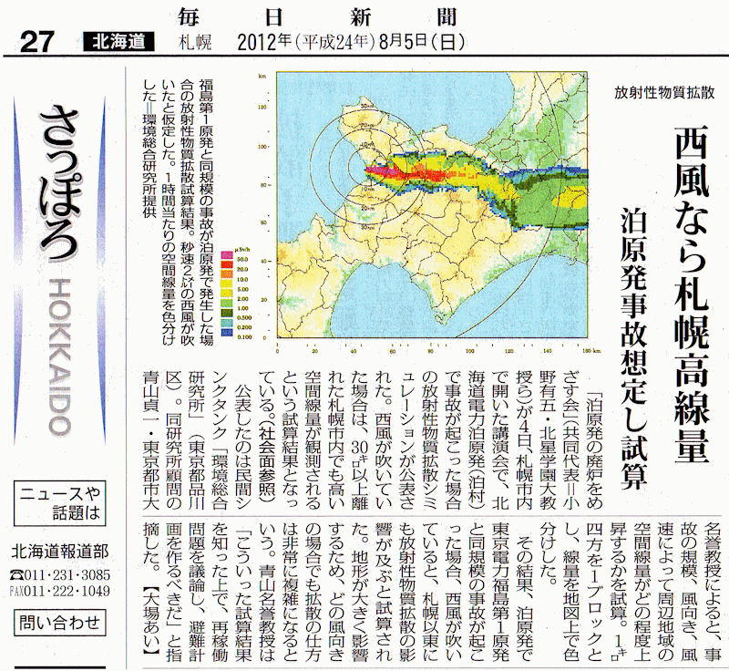 西風なら札幌高放射線量