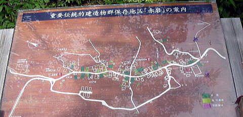 赤岩養蚕集落の南はずれに赤岩神社がある。過去、何度も行っている赤岩地区だが、いつも神社の入り口は見ても本殿まで行ったことはなかった。2010年、青山ゼミの学生を連れ北軽井沢に来たとき、はじめて池田さんと学生が本殿まで上りお参りすることが出来た。 残念ながら、このとき青山は3月くらいから体調を悪化させており、持病の気管支喘息に加え動機、息切れが激しく、到底、赤岩神社本殿まで登れなかった。はじめて登ったのは2011年の夏である。 ●赤岩神社 赤岩神社の参道入口前にある以下の案内図では、緑色の■となっている部分が「重要伝統的建築物群保存家屋」となっており、その右外れ(実際は南端)に赤岩神社の入口がある。 ![]() 撮影:青山貞一 Nikon CoolPix S8 下の赤岩集落のジオラマでは、右のはずれに赤岩神社の入り口があり、ジオラマの右上の白い案内がある部分が本殿の位置を示している。 ![]() 赤岩農村落のジオラマ。 撮影:青山貞一 Nikon Cool Pix S8 ![]() 撮影:青山貞一 Nikon CoolPix S8 赤岩集落には今回皆で山を登り惨敗した赤岩神社のほか、観音堂、毘沙門堂、東堂、向坂の観音堂などの寺社仏閣も残っている。 撮影:青山貞一 Nikon CoolPix S8