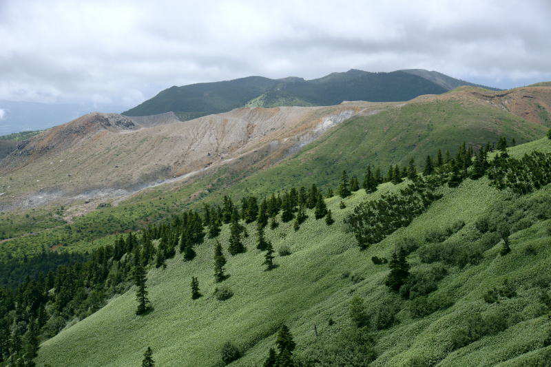 私達は白根山をトレッキングした後、今回の現地視察の最後の目的地、群馬県と長野県の県境にある小串鉱山がある毛無峠に向かった。 実は群馬県嬬恋村北部には、4つの硫黄鉱山跡がある。石津鉱山跡、白根鉱山跡、吾妻鉱山跡、それに小串鉱山跡である。 青山、池田はすでにそれら4つを現地視察しているが、なかでも4つ目の小串鉱山跡は、群馬県と長野県の県境、しかも1823mの標高をもつ毛無峠近にあり、歴史、文化だけでなく日本離れした絶景が楽しめる。 ![]() 嬬恋村にあった4つの硫黄鉱山の位置。 いずれもパノラマライン北ルートの北部にある 出典:グーグルマップをもとに筆者が作成 目的の毛無峠(小串鉱山)に神楽図、4つの硫黄鉱山跡地はいずれも現地視察したところすでに設備、施設のほとんどが朽ち果てており、なかなか鉱山跡地や施設、設備の残骸を探すのも困難であった。 今回は時間の関係もあり、長野と群馬の県境にあり絶景が楽しめる小串鉱山が遠望できる毛無峠を白根山のあとに現地視察することにした。 下の写真は、いずれも白根山から長野県側に向かう途中に撮影したものである。 ![]() 撮影:青山貞一 Nikon CoolPix S8 ![]() 草津白根山。山頂はテーブルマウンテンとなっているが、 火山活動により樹木はほとんどない。 撮影:青山貞一 Nikon CoolPix S8 現地に行く道は、長野県側から入る場合と群馬県側から入る場合の2つがある。私達は、下の地図の右下にある毛無峠に上にある万座ハイウェー側から干俣線を下り、さらに大前須坂線を通り毛無峠に到着した。地図の方位が左側が北なので注意。 地図中、通行注意区間3.7kmは確かに道幅が狭く、片側が深い崖となっているなど運転には細心の注意が必要だが、夏場はそれほど大きな問題はないはずである。 ![]() 毛無峠のランドマークは、以下の2枚の写真にある鉄塔である。この鉄塔は小串鉱山があったころ動力として電力を送電した名残である。 ![]() 撮影:青山貞一 Nikon CoolPix S8 ![]() 撮影:青山貞一 Nikon CoolPix S8 ![]() 撮影:池田こみち Nikon CoolPix S10 ![]() 撮影:鷹取敦 Digital Camera CASIO EX-H20G ![]() 撮影:池田こみち Nikon CoolPix S10 現地には以下の標識がある。 ![]() 撮影:青山貞一 Nikon CoolPix S8 小串鉱山跡地は、この毛無峠から高さで300m、距離で3−4kmつづら折りの道を下ったところにある。下の2枚は下って行く方向を撮影した写真である。 ただし、毛無峠から小串鉱山跡へは車では通行禁止となっている。バイクや徒歩で行くことは可能だが、帰りが急斜面を登るので往復最低3時間、現地滞在を1時間とすると4時間かかる。 ![]() 撮影:青山貞一 Nikon CoolPix S8 ![]() 撮影:池田こみち Nikon CoolPix S10 参考:小串鉱山遺構地図 ![]() 撮影:青山貞一 Nikon CoolPix S8 これは昨年撮影した写真 毛無峠には、昨年、今年といずれもルリタテハを見ることができた! ![]() 撮影:池田こみち Nikon CoolPix S10 これは2011年8月 ![]() 撮影:鷹取敦 Digital Camera CASIO EX-H20G 下はクジャク蝶。いずれもタテハ蝶科である。 ![]() 撮影:池田こみち Nikon CoolPix S10 これは2011年8月 下の写真の左側の薄い茶色部分が小串鉱山跡地である。 ![]() 撮影:青山貞一 Nikon CoolPix S8 以下はバイクで小串鉱山後まで下っていったひとが撮影した動画である。 林道 硫黄鉱山跡へ KLX250SR http://www.youtube.com/watch?v=5GYZDJCcTVY なお、青山、池田、鷹取は毛無峠は2回目だが、ここは知る人ぞ知るラジコン飛行機やグライダーを飛ばすメッカでもあり、今回も2人が来ていた。 ![]() 撮影:青山貞一 Nikon CoolPix S8 こうして、私達の群馬県北西部の短訪は、すべて終わり、万座ハイウェー、国道146号線、長野道、関越道で灼熱の東京に夕方戻った。 つづく |