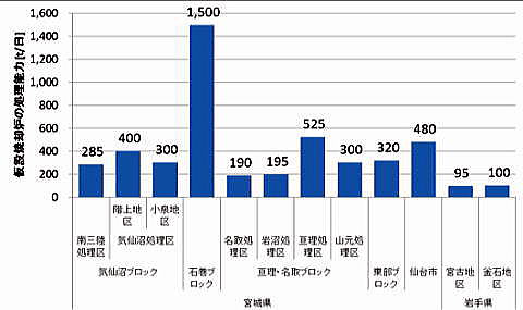 図1 宮城県・岩手県の仮設焼却炉の処理能力等