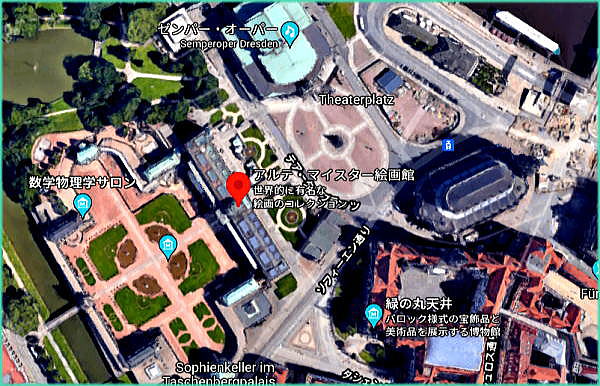 | 総合メニューに戻る アルテ・マイスター絵画館1 アルテ・マイスター絵画館2 アルテ・マイスター絵画館3 アルテ・マイスター絵画館4 アルテ・マイスター絵画館5 アルテ・マイスター絵画館6 アルテ・マイスター絵画館7 アルテ・マイスター絵画館8 アルテ・マイスター絵画館9 ◆アルテ・マイスター絵画館(ドレスデン市) ![]() ツヴィンガー城の中庭から見たアルテ・マイスター絵画館 Source:Wikimedia Commons パブリック・ドメイン, リンクによる はじめに アルテ・マイスター絵画館(独: Gemäldegalerie Alte Meister)はドイツのドレスデンに位置する美術館です。日本では「古典絵画館」、「古典美術館」といわれることもあります。ドレスデン美術館を構成する12の美術館の一つで、ザクセン州が管理しています。 アルテ・マイスター絵画館の位置は以下のグーグルマップにあるように、ドレスデンの中心部、有名なツヴィンガ-宮殿の一角、庭に面してにあります。北にはゼンパー・オーパー歌劇場、東には緑の丸天井美術館などがあります。 ![]() アルテ・マイスター絵画館(独: Gemäldegalerie Alte Meisterの位置 出典:最新グーグルマップ 以下はアルテ・マイスター絵画館の平面図です。総二階建てで、左右対称、展示室も完全な対称形となっています。入り口は中央、ツヴィンガ-宮殿の噴水がある庭側にあります。 ![]() ドレスデン、アルテ・マイスター絵画館の計画図。 Source:Wikimedia Commons ![]() ドレスデン、アルテ・マイスター絵画館入口前に立つ池田こみち 撮影:青山貞一 Nikon Coolpi S8 2004年9月5日 開館日・時間: ツヴィンガー宮殿のゼンパーギャラリーにあるオールドマイiスター絵画館は、火曜日から日曜日の午前10時から午後6時まで開いています。絵画館は月曜日が定休日です。 入場料: 通常の入場料:10.00ユーロ/人割引:7.50ユーロ/人。17歳未満の子供と若者は無料で入場できます。学童、学生、研修生(17歳から):7.50ユーロ/人。10人以上のグループは1人あたり9.00€を支払います。 コレクション アルテ・マイスター絵画館が所属する絵画群は15世紀から18世紀のものがほとんどで、特に17世紀のルネサンス期、バロック期のイタリア絵画、オランダ絵画、フランドル絵画が主要なコレクションとなっています。 また、これらの他にもドイツ、フランス、スペインの著名な画家たち(アルテ・マイスター)の作品が所蔵されています。2008年には536,000人がこの美術館を訪れました。 ![]() メインホール、ドレスデンツヴィンガー美術館のGemäldegalerieAlte Meisterの展望。 ドレスデン、ドイツ Source:Wikimedia Commons CC 表示-継承 3.0, リンクによる ![]() アルテマイスターギャラリーのカナレットルーム Source:Wikimedia Commons By CC BY-SA 4.0, Link ![]() ドレスデンのGemäldegalerieAlte Meister、東棟1階の展示ホール Source:Wikimedia Commons CC 表示-継承 4.0, リンクによる ![]() ドレスデンのオールドマスターズ絵画ギャラリー、ドイツホール Source:Wikimedia Commons CC 表示-継承 4.0, リンクによる ![]() 1881年からの「ドレスデンハンギング」 Source:Wikimedia Commons: Public Domain, Link ![]() ドレスデンツヴィンガー美術館のアートギャラリー Gemaldegalerie Alte Meister。ドレスデン、ドイツ Source:Wikimedia Commons CC 表示-継承 3.0, リンクによる ![]() オールドマスターの夜のオープニング Source:Wikimedia Commons:, CC BY-SA 4.0, Link アルテ・マイスター絵画館<2>へ つづく |