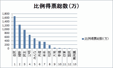 ![]() 出典:吉川ひろし氏(元千葉県議)データより作成 ![]() 得票数と議席数のギャップ(小選挙区) 出典:毎日新聞 2012年12月17日 14)大政党となった自民党が小選挙区制を中選挙区制に 変えるとは考えられないとすると、中小政党の乱立は 結果的に自民党一極支配に利することになること、 15)結果として、国民の60−70%が脱原発の意向をもって いることに反し、実質的に原発推進の自民党さらには 公明党が全体議席の70%近くを取ってしまった。 16)圧勝した自民党などは、原発推進のみならず、国土 強靱化(鉄とコンクリートの公共事業推進)計画、新自由 主義に基づく規制緩和により格差拡大、はては集団的自 衛権から憲法改正に至る政策を順次推進する可能性が 大である。 憲法改正については、自民党は憲法96条の改正を言明しているが、そのためには当然のこととして、参議院において自民党が2/3以上の議席を得なければならない。というのも、現時点では公明党が憲法改正に難色を示しているからである。 しかし、民主党、日本維新の会、みんなの党などが憲法改正に前向きであることから2013年夏の参議院選挙結果いかんでは、衆参ともに改憲派が2/3を超す可能性もある。 ![]() 17)周知のように今回の総選挙は最高裁の「違憲状態」判断のなかで強行された選挙であった。野田総理は、違憲を知っていながら敢えて選挙を断行したことになる。当然、今回の総選挙結果が提訴されるであろう。 18)今回は、本来、米国の週単位で行われているイニシアティブ(住民投票)ないしレファレンダム(法案賛否投票)に類する直接民主制度で脱原発の是非を国民が判断すべきものであったと思える。その意味で、日本の地方自治法にある直接請求ではなく、米国型のイニシアティブ(住民投票)ないしレファレンダム(法案賛否投票)の直接民主主義制度こそ、日本社会に必要であるとと思う。 |