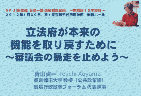 以下に今回の授業「情報化と市民参加」の背景について私見を述べます。 日本全体の社会的、政治的沈没の原因は、もとをただせば、国民が自分の頭で考えず、連日連夜流れてくる新聞、テレビなどのマスコミを鵜呑みにしていることにあると思います。 同時に、国会議員はじめ政治家が暴走する行政を何らコントロールできていないこともあります。民主主義の本道は、選挙で選ばれた政治家が国民が何ら選んでいない行政をどれだけコントロールするかにあります。しかし、日本は何から何まで官僚、行政が政治のみならず、社会をコントロールしています。 これは言うまでもなく官僚や官僚組織が、自分たちが立法府によってコントロールされないように、各種行政法はじめ仕組みをつくってきたからです。 これにより仮に行政訴訟となっても官僚、官僚組織側は負けず、日夜巨大な裁量をもとにやりたい放題をしています。群馬県高崎市で講演したように、復旧復興予算の多くがそれ以外に流れ、しかも環境省予算が国交省予算をはじめて上回っている現実も上記と無縁ではありません。 民主党政権の最大の課題は、自民党同様、立法、政治による行政のコントロールを当初標榜しながら、自民党、マスメディア、産業界など既得権益をもっている陣営からの攻撃で、財務省はじめ官僚組織の軍門に下ったことにあります。 この問題を熟知している小沢一郎氏が冤罪に近い東京地検特捜部とそれに従うマスメディア連合軍によって、2009年3月以降、実質、蟄居させられた現実は、きわめて重要です。 昨日、鵜呑度の講義のなかで、以下に触れたのはそのためです。小沢氏は仕組まれた検察審査会により強制起訴されましたが、すでに一審は無罪、来月予定されている高裁でも無罪がほぼ確定しています。 事例研究:東京地検特捜部とメディアがつくた小沢一郎事件 @ NHKの情報操作による世論誘導ではじまった小沢事件 A マスコミがほとんど書かなかった重要な事実を振り返る B 情報操作による世論誘導で騙されやすい日本国民 C司法制度の危機には目をつむるマスコミ D名誉毀損罪及び名誉毀損による損害賠償の成立条件 小沢氏の嫌疑が晴れても、この2年、小沢氏が蟄居させられたことで、菅や松下政経塾系議員が財務官僚の手先になり、日本を壊してきた事実はいかんともしがたいものがあります。 菅と前原が、3.11直前、トップセールスと言って日本の原発をベトナムやリトアニアに売り込んできたことは言うまでもありません。 民主党が政権交代後、一番最初に着手すべきだったのは、実体法、手続法を問わず、過去半世紀、官僚によってつくられてきた日本の行政法をすべからく改正することにあったと思います。 立法による行政のコントロールを一貫して問題視しているのは友人の福井秀夫政策研究大学院大学教授であり、日本で司法官僚や検察官はては弁護士までが、立法による行政のコントロールを阻害していると述べているのは、郷原伸郎関西大学教授です。郷原さんは、地検検事、特捜部検事を歴任しています。 ところで、国民について日本国民と正反対の関係にあります英国、とりわけスコットランド国民と対比すると明白です。たまたま札幌に講演に呼ばれ知り合った泊原発脱原発活動をされている2名の共同代表(ともに理系の北大名誉教授)がご子息をグラスゴーに嫁がせたり、英国に行っている友人から聞いた話として、英国やスコットランド(私は敢えて英国一般とスコットランドを分けています)では、中学校などの段階から先生がマスコミを安易に鵜呑みにしてはいけないと生徒に話している実態を知りました。 日本国民の最新鵜呑度が72.5%、英国民のそれが12.5%、とみに最高と最低ですが、その理由のひとつは教育にあると思います。 世界各国民鵜呑度調査 2000年 2005年 単位:% 日本 70.2 72.5 韓国 64.9 61.7 中国 64.3 58.4 オランダ 55.7 31.7 ドイツ 35.6 28.6 フランス 35.2 38.1 ロシア 29.4 36.0 アメリカ 26.3 23.4 イギリス 14.2 12.5 その意味で、昨日の講義のひとつのポイントは、日本の異常さを世界各国と比較することにより理解することにあります。 廃棄物行政もその典型ですが、日本のゴミを集めて燃やして埋めるが当たり前の日本だけを見ていると、そのおかしさが見えませんが、諸外国と対比することにより異常さが際だってきます。 この講義のもうひとつの重要な背景は、現状追認、利益配分の構造が、従来の政官業から政官業学報、すなわち学者・研究者とともにマスコミが審議会、委員会、検討会など行政システムに組み込まれ、さもなくとも喪失している社会の木鐸機能が完璧なまでに退化してきたことです。 これは放射能、放射線による影響についても同じでしょう。 ![]() ![]() これは原子力、原発関連の国の審議会、委員会、八ッ場ダムなど社会整備事業に係わる審議会、委員会、検討会を見れば明らかです。マスコミの編集委員などが準委員に組み込まれることで、本来監視すべき対象の中に