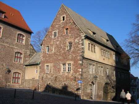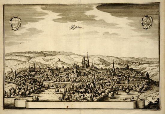 | 総合メニューに戻る アイスレーベン1 アイスレーベン2 アイスレーベン3 アイスレーベン4 アイスレーベン5 アイスレーベン6 ◆アイスレーベン3 ルネサンス 郊外を含む旧市街の再建 1498年に最古の都市壁内(アンドレアス地区/マルクト地区)が大火で壊滅した後、マンスフェルト伯の1498年8月17日[22]付けの特権に基づき、再建が開始された。差し当たりは順調に進み、初期は後期ゴシック建築の要素が用いられました。 都市壁拡大による郊外の取り込みと、水の供給[23]の面で役立ったこととして、1480年から1566年にかけて、つまりマクデブルク大司教が同時にハルバーシュタットの管理者であった時代、マンスフェルト伯がマルクト地区(ハルバーシュタット司教区)と郊外(マクデブルク大司教区)の封建領主を兼ねていたことが挙げられます。 1520年から1540年にかけて、宗教改革はアイスレーベンとマンスフェルト伯領で段階的に進み、特に1525年にヨハネス・アグリコラが福音派の男子校を設立しました。これは1546年の「ルターの条約 (Lutherische Verträge)」によって設立されたラテン語学校(ギムナジウム)の前身です。 後期ゴシックからルネサンスへの建築様式の移行は、旧市街の市庁舎、ヒンターオルトの都市居所(1500年/1589年)、聖アンドレアス教会の装飾に見ることができます。都市の再建で特筆すべき人物としては、ベルンディヌス・ブランケンベルク(Berndinus Blanckenberg, 1470年頃-1531年)がいます。 1507年から市参事、1518年から都市代官を務めました。彼の墓碑銘はハンス・シュレーゲル (Hans Schlegel)によってルネサンス様式で制作され、聖アンドレアス教会にあります。同教会内には、同じくシュレーゲルの手になるホイアー4世・フォン・マンスフェルト伯爵の棺型墓(1541年)があります。 都市再建は、16世紀の始めの3分の1の期間は大いに進みました、1530年以降はマンスフェルト鉱山の危機のために、かつての勢いを失って行きました。しかしながら1538年と1560年に墓地 (Campo Santo)、1564年にはラテン語学校の校舎、1566年には聖ペトリ=パウリ教会の尖塔のルネサンス様式の円蓋、カタリーナ修道院の管理棟、1571年から1589年にかけてノイシュタット市庁舎、1585年から1608年にはアンネ教会が完成しました。 1601年には大火が起き、とりわけルネサンス様式の水城、ミッテルオルトの都市居所、ギムナジウム、貨物計量所、多数の住民の家屋が破壊されましたが、大規模な再建は見られませんでした。その原因には、1570年にマンスフェルト伯の財産接収、1573年と1579年の財産分割と交換があります。 ハルバーシュタットとマクデブルクのザクセン選帝侯は、アイスレーベンをその郊外と交換しました。また三十年戦争の負担、鉱山と関連産業の衰退もあります。これは1671年にザクセン選帝侯が鉱山を開放するまで続きました。これらと入り組んだ行政機構(1780年までは伯爵による行政もあった)が相まって、都市は経済的に凋落して行きました。これは18世紀末まで続き、建築物に明瞭に表れています ノイシュタットと宗教改革 ![]() ノイシュタットの市庁舎 Source:Wikimedia Common CC 表示 3.0, リンクによる 1501年、マンスフェルト伯家は分割相続のため「マンスフェルト=フォアダーオルト (Mansfeld-Vorderort)」「マンスフェルト=ミッテルオルト (Mansfeld-Mittelort)」「マンスフェルト=ヒンターオルト (Mansfeld-Hinterort)」の3家に分かれました。 16世紀初頭には3家がそれぞれアイスレーベンに都市居城を構えました。アルブレヒト4世伯爵(1480年-1560年)、「ヒンターオルト家」支流の末裔が、鉱山の活性化のため、ドイツの他の地域から鉱山や精錬所で働く労働者を呼び寄せ、旧市街の西方に住まわせ、この集落に都市権を与えました。この集落は「アイスレーベン近郊新都市 (Neue Stadt bei Eisleben)」、今日では「ノイシュタット(新市街)」または「アンネ地区 (Annenvierte)」と呼ばれています。 今日の「ブライト道」に、1571年から1589年にかけてノイシュタットの市庁舎が建設され、1848年にはここに地方裁判所、都市裁判所が置かれ、1853年には郡裁判所となりました。そのためこの建物は「旧裁判所 (Alte Gericht)」と呼ばれています。 1514年、皇帝マクシミリアン1世は、 アルブレヒトに都市権の取り消しを要求しました。アルブレヒトは、この要求に反対し、その代わりにアウグスティーノ隠修士修道院であり、教会を備えたアンネ修道院 (Annenkloster) を設立しました。 ここでアルブレヒトは1518年にルターと対面しています。1520年にアンネ修道院のアウグスティーノ派の総会では、ルターの教えに賛同する旨、決議した。修道院は1523年に解散しました。 マンスフェルト=フォアダーオルト家がカトリック信仰を堅持したのに対し、ゲルハルト7世率いるマンスフェルト=ヒンターオルト家、特にアルブレヒト7世・フォン・マンスフェルトはルターと友人であり、宗教改革の思想に共鳴しました。 1525年に2人は、福音派の教義を導入し、聖アンドレアス教会の隣に福音派学校の設立