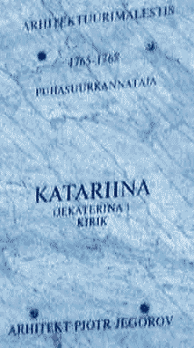 さらに下はエカテリーナ教会(Jekateriina kirik, 英語でSt. Catherine's church)である。教会のすぐそばにサンクト・ペテルブルグという名のホテルがあることからも、エカテリーナはエカテリーナ2世( 1729年4月21日 - 1796年11月6日)、 ロマノフ朝の第8代ロシア皇帝。夫はピョートル3世が建てた教会である。