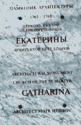 教会の壁にあった解説を見るとこのエカテリーナ教会は1765年から1768年の間に建築されている。1764年、この地を通ったエカテリーナ2世が建て替えを命じてできた教会とのこと。