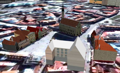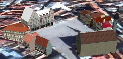 下はグーグルアースで3次元CG展開した旧市庁舎とラエコヤ広場である。ラエコヤ広場と市庁舎との位置関係がよく分かる。