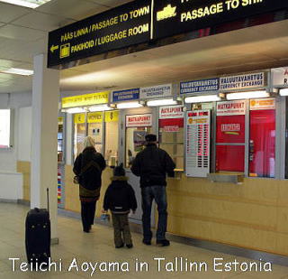 下の写真はターリンクDターミナルの両替所でユーロをエストニアのクローンに替えているところ。約1週間で5カ国を回った今回の旅で一番大変だったのは、実はこの両替かも知れない!