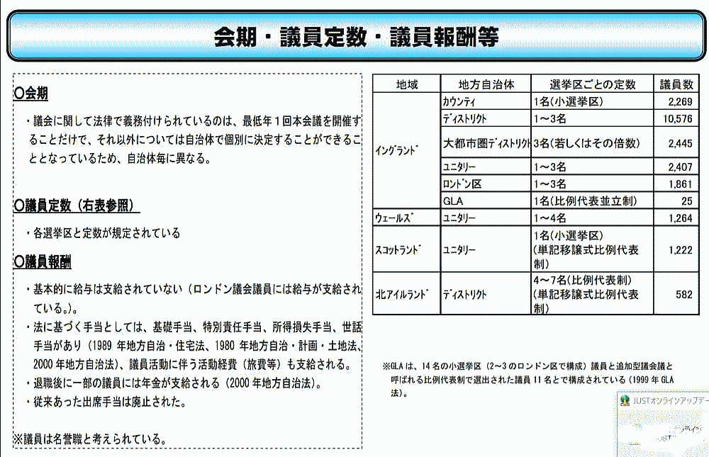 以下はEU離脱を決めた英国の地方議会の議員定数、報酬等の概要です。