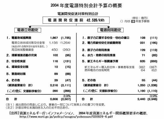 ECCS(緊急炉心冷却システム)など先端技術の粋を集めたはずの原発だが、福島第一原発大事故を見ると、3月の事故直後から5月上旬の現在に至るまで、その対策の多くは、ただ毎日、毎日原子炉建屋の上から水をかけるしかないのが実態なようだ。 何ともおそまつきわまりない。 こんなおそまつな原発が、狭くて人口が多い日本の沿岸域に54基も設置されているのだから、私たちは夜もオチオチ寝ていられない。 また世界に冠たる日本の技術や経済が、かくも稚拙で恐怖に満ちた原発による電気に多くを依存してきたかと思うと、まさにぞっとする。 ではなぜ、かくも原発がこの狭い日本の沿岸部、それも過疎の寒村にたくさん出来たのかと言えば、それはいうまでもなく、原発を立地する地元の基礎自治体に、巨額の「電源3法交付金」と呼ばれるカネが落ちるからである。 電源3法交付金とは何か? まず最初にその概要を示そう。 電源3法交付金は、「安定的かつ低廉な電気の供給を確保することは、国民生活、経済活動にとって重要であり、計画的な電源立地が必要です。また、発電所の計画的かつ円滑な立地を図るためには、発電所を受入れる地域の福祉向上を図り、地元の理解と協力の下に立地を進めることが必要です。このための中心的な施策が電源三法交付金です」なのだそうだ。 具体的には、電源3法とは、昭和49年度に創設された(1)電源開発促進税法、(2)電源開発促進対策特別会計法、(3)発電用施設周辺地域整備法の3つの法を総称するものであり、法の趣旨を見ると、「電源地域の振興、電源立地に対する国民的理解及び協力の増進、安全性確保及び環境保全に関する地元理解の増進など、電源立地の円滑化を図るための施策が行われます」とある。 次に、発電用施設周辺地域整備法に基づいた「電源立地地域対策交付金」を紹介しよう。 「電源立地地域対策交付金」は、発電用施設の立地地域・周辺地域で行われる公共施設整備事業や住民福祉の向上に資する事業に対し交付金を交付することを意味し、発電用施設の設置に係る地元の理解促進等を図ることを目的としているとされている。 この「電源立地地域対策交付金」は、平成15年10月に電源立地促進対策交付金、電源立地特別交付金などを統合し創設されたものであり、従来の対象事業に加え、新たに地域活性化事業が交付の対象事業に追加され、幅広い事業が実施可能となっている。 政府の電源特別会計予算全体を見ると、以下にあるように、<電源立地>と<電源利用>の双方で実に2004年度ベースで5046億円に達していることがわかる。ちなみに2004年度は2003年度に比べ<電源立地>と<電源利用>ともに、3.9%増えていることもわかる。 ![]() ところで、ある調査によると2004年度の「電源3法交付金」のうち、原発が立地されている都道府県への交付金は、予算ベースで約824億円に上るとされている。 その内訳を見ると、福島第1、第2原発を抱える福島県には約130億円、柏崎刈羽原発を抱える新潟県には約121億円、敦賀、美浜、大飯、高浜原発を抱える福井県には約113億円、六ヶ所村核燃料再処理施設や放射性廃棄物管理施設を抱える青森県には約89億円が交付されている。 上記の額は、あくまでも単年度(1年)当たりの交付額である。したがって、1970年代初頭から原発を立地してきた福島県の場合、1974年に制定された「電源3法交付金」の累積額は巨大なものとなる。さらに発電所の運転開始後は、固定資産税をはじめとする事業税などが、長期間にわたって税収として入ることになる。 資源エネルギー庁の説明によれば、モデルケースの場合、最新型の原発を誘致した基礎自治体は45年間で2,455億円もの巨費を受け取ることができるという。ただし、交付金の額は一定ではなく原発の着工から運転開始までの7年間が総額433億円だが、それを過ぎると、8年目以降は前年の4割程度に落ちる。 そこで”原発立地依存症”にとりつかれた基礎自治体は、2号機、3号機と同じ基礎自治体内に原発を増設してゆくことになる。まさに、これが”原発立地依存症”の本質である。麻薬同様、一度手を出すと抜け出すことが困難、いや不可能となるゆえんである。 ちなみに福島原発の場合、福島第1号原発では、 第1号機 〜第6号機 が福島県双葉郡大熊町と双葉町にまたがって臨海部に立地されている(下の写真参照)。 ![]() 東京電力 福島第一原子力発電所 出典:東京電力 ![]() 出典:東京電力 また福島第2号原発では、第1号機〜 第4号機 が 福島県双葉郡富岡町と楢葉町にまたがって臨海部に立地されている(下の写真参照)。 写真左の2機が楢葉町、右の2機が富岡町に立地しており、敷地面積は20万平方メートル、東京ドーム32個分である。 ![]() 東京電力 福島第二原子力発電所 出典:東京電力 私たちは、福島第一原発が立地されている大熊町と福島第二原発が立地されている楢葉町における「電源3法交付金」の交付実態及び使用実態を探るべく、2011年4月17日(日)、福島県いわき市の広田法律事務所で