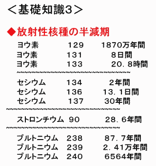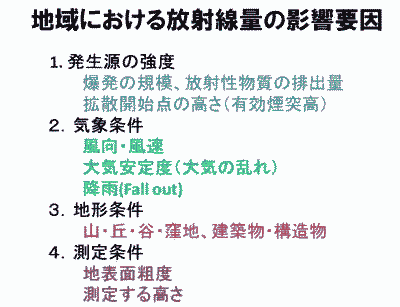 Aからつづく <放射性物質、放射線、放射能に関する基礎的知識> 1)放射性物質、核種、放射線、放射能、半減期、積算線量、核種基準、 規制値、指針の持つ意味 2)放射性物質の飛散(移流、拡散、沈降)、地形、気象との関係 3)放射線の種類と影響、放射能と放射線との相互関係 4)外部被曝と内部被曝、確定的影響と確率的影響 5)国の規制指針値の持つ意味について ![]() 出典:青山貞一 矢板講演パワーポイント ![]() 出典:青山貞一 矢板講演パワーポイント ![]() 出典:青山貞一 矢板講演パワーポイント ![]() 出典:青山貞一 矢板講演パワーポイント ![]() 出典:青山貞一 矢板講演パワーポイント ![]() 出典:青山貞一 矢板講演パワーポイント ![]() 出典:青山貞一 矢板講演パワーポイント ![]() 出典:青山貞一 矢板講演パワーポイント ![]() 事故当時の北風系の汚染物質の移流、拡散 出典:環境総合研究所(東京都品川区) ![]() 重要な地形的要因 出典:環境総合研究所(東京都品川区) ![]() 放射性物質の移流、拡散シミュレーション例示 断面図 出典:環境総合研究所(東京都品川区) ![]() 地震など事故時の放射性物質の移流、拡散シミュレーション例示 平面図 出典:環境総合研究所(東京都品川区) ![]() 地震など事故時の放射性物質の移流、拡散シミュレーション例示 断面図 出典:環境総合研究所(東京都品川区) ![]() 積算線量推計の例 出典:環境総合研究所(東京都品川区) ![]() 出典:青山貞一 矢板講演パワーポイント つづく |