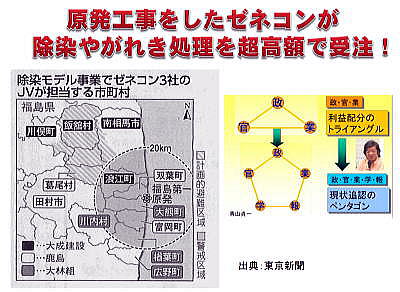 政権交代によって普天間基地の辺野古移転撤回と同様、八ッ場ダム建設中止にも国民は大きな期待を寄せましたが、詐欺政党と言われても仕方ない民主党によって、いずれの期待も裏切られました。 しかも、国民が何ら頼んでいない増税を3党合意というペテンで国会を通過させました。これほど節操なく、至誠のかけらもない政党は今まで見たことがありません! ![]() 撮影:鷹取敦 使ったパワーポイントは200枚、3/4が新規に作成したものです。 ![]() 撮影:鷹取敦 いくつかの予測で民主党は次回の総選挙では80議席取れれば御の字、50議席という予測もあります。当然の報いでしょう。 ダム、ひっくりかえすとムダです。 ![]() 出典:青山貞一 ![]() 出典:青山貞一 この間、除染、がれき広域処理に関連し、復旧、復興予算がいかにムダ、それももともと原発の建屋などを建設してきたゼネコンに流れているか、それも実質随意契約でゼネコン側の言い値で消費されているか、その現場を報告してきました。 ![]() 出典:青山貞一 ![]() 出典:青山貞一 ![]() 出典:青山貞一 ![]() 出典:青山貞一 以下はがれき広域処理で大手ゼネコンに5000億円近くの復旧、復興予算が投入された事例。同僚の池田こみちさんが執念で徹底分析した結果です。 しかも、当初環境省がホームページ、新聞、テレビに公表した瓦礫処理、とりわけ広域処理が必要となる量は、下のグラフのように巨大だったが、実際にはその1/5以下であることが分かった。 にもかかわらず大手ゼネコンへの委託額はそのまま、ゼネコンの言い値が競争入札せず、決まっていた。 ![]() 出典:青山貞一 参議院議員会館第二回報告会ppt しかも、参考価格と落札価格は地域を問わず一律84%、まさに官製談合といわれても仕方がないものだ。 ![]() 出典:池田こみち 参議院議員会館第二回報告会ppt 本来、本当に必要な場所にお金が使われず相も変わらず異常な50万社、500万人があるとされる土建業に流れている。それも大手が元請けとなっている実態にも迫りました。 つづく |