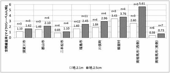 表 福島放射線現地調査結果(主要市町村別平均値)