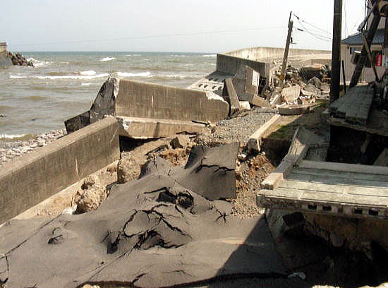 2018年6月16日 いわき市久之浜現地調査 以下は今回の調査で撮影した写真です。久之浜は地震、津波、火災で焼失した地域を大々的に区画整理し、沿岸部に四倉海岸並みの防波堤をつくり、他地域を公園(空地)、道路などとしていた。 しかし、依然として帰ってこない世帯、住民、商店も多く、3.11以前のような活気ある街並みはない。 下は被災者用につくられた大きなた災害復興住宅。 ![]() 撮影:池田こみち Nikon Coolpix S9900 なお、平成23年3月11日現在における久ノ浜地区の被害は以下の通りである。死者は68名となっており、浸水区域の全戸数は694戸、大規模半壊以上は465戸であり全体の67%に及んでいる。 ![]() 出典:被災状況と復興への取り組みについて 「いわき市久之浜地区」 福島県いわき建設事務所 下の写真は3.11以降に沿岸域につくられた久之浜防災緑地の案内図である。 ![]() 撮影:青山貞一 Nikon Coolpix S9900 ![]() 撮影:池田こみち Nikon Coolpix S9900 ![]() 撮影:青山貞一 Nikon Coolpix S9900 以下は防災緑地の海岸側である。 海岸の沖には津波を緩衝するためにコンクリート製テトラポッドを積み上げ、細長い島がいくつも連なっていた。 ![]() 撮影:池田こみち Nikon Coolpix S9900 ![]() 撮影:池田こみち Nikon Coolpix S9900 ![]() 撮影:青山貞一 Nikon Coolpix S9900 区画整理地の一角には、奇跡的に破壊を免れた小さなお堂があり、ボランティアでその土地の草取りをしている地域住民と話すことができた。 ![]() 撮影:池田こみち Nikon Coolpix S9900 特別の土地区画整理事業でできた全59の区画は分譲中だが、帰還者はあまりなく、区画の空きが目立っているという。その理由のひとつには、被災者用の大きな集合住宅に移り住んでいる市民が多いこと、国、県、市からの様々な援助があるものの、高齢者にとっては、新たに戸建ての住宅や店舗に入居することをためらっていること、もとより、若い世帯がいないことなどがあるという。 すでに見た江名走出の沿岸集落同様、久之浜地区も集落全体、コミュニティが破壊されていたのである。 ![]() 撮影:池田こみち Nikon Coolpix S9900 久之浜地区の放射線量は0.05μSV/hであった。 ![]() 撮影:青山貞一 Nikon Coolpix S9900 3.11で破壊された橋も新たに設置されていた。 ![]() 撮影:池田こみち Nikon Coolpix S9900