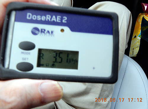 | <総合メニューへ> 久ノ浜・末続 原発立地自治体放射線量 新地町1 新地町2 相馬市松川浦 相馬市大洲松川線 南相馬市沿岸部 飯舘村(放射線量) 久々の会津若松 ◆原発直近自治体を走る国道6号線上1m高に おけるの空間放射線量率の連続測定 2018年6月17日夕方、私たちはいわき市の久之浜、未続地区を現地調査後、国道6号線で広野町、楢葉町、富岡町、大熊町、双葉町、浪江町、南相馬市、相馬市の順に北に向かった。 周知のように2011年3月、過酷な事故を起こした東京電力の福島第一原子力発電所は、大熊町の太平洋岸にある。また事故は起こさなかったが東京電力の福島第二原子力発電所は、富岡町の太平洋岸にある。 一般道路の国道6号線は、楢葉町から南相馬市の小高区の間、2015年まで一般車両は通行禁止だったが、今回の現地調査時は、帰還困難区域に車が入らない限り、通行が可能となっていた。 そこで下図にある国道6号線を南の広野町から相馬市まで、池田こみちがほぼ一定速度でトヨタプリウスで走行し、ほぼ地上1mの高さで青山貞一が米国製の空間放射線量計により空間放射線量率を測定した。 測定対象は主にガンマー線(γ線)である。ガンマ線(γ線、英: gamma ray)は、放射線の一種で、その実体は波長がおよそ 10 pm よりも短い電磁波である。ガンマー線は放射性物質が核分裂する際に放出される放射線である。 放射性核種の半減期 ヨウ素 129 1870万年間 ヨウ素 131 8日間 ヨウ素 133 20.8時間 セシウム 134 2年間 セシウム 136 13.1日間 セシウム 137 30年間 ![]() 出典:放射能の正しい理解 なお、線量計は米国製のDOSE RAE2。 ![]() 出典:グーグルマップ 下の写真は測定に使った環境総合研究所(東京都目黒区大岡山)所有のトヨタプリウスの同型車である。車高は1490mmである。 ![]() 出典:トヨタ自動車 測定者である青山が助手席に座った状態で計測する高さがほぼ1mとなる。 ![]() 撮影:青山貞一 Nikon Coolpix S9900 下の地図のピンクゾーンは、帰還困難区域である。国道6号線は薄い緑(黄緑色)の線である。E6は常磐自動車道(拘束高速道路)である。今回の調査では、常磐自動車道より2から5kmほど海側で福島第一原発に近い国道6号線上を走行した。 ![]() 出典:NEXCO東日本 以下は調査の始点近くの広野町の写真である。 ![]() 撮影:青山貞一 Nikon Coolpix S9900 下の写真は、国道6号線の大熊町で撮影したものである。国道6号線から左右の一般道路への侵入はいずれも通行制限中(一般車両は実質禁止)であった。 ![]() 撮影:青山貞一 Nikon Coolpix S9900 以下のグーグル衛星地図は、東京電力福島第一原発と国道6号線の位置関係を示している。最も近いところは大熊町長者原付近(常磐線の大野駅と双葉駅の間)で福島第一原発の敷地から国道6号線に約1kmの距離にある。 ![]() 出典:グーグルマップ(名メンズ) ![]() 出典:グーグルマップ(3D立体図) 下は双葉町役場近くを通過時のナビである。時刻は17時16分である。 ![]() 撮影:青山貞一 Nikon Coolpix S9900 下は福島県双葉町の下条地区通過時に撮影した写真。時間は17時17分である。 ![]() 撮影:青山貞一 Nikon Coolpix S9900 以下のグラフは福島県国道6号線を走行する乗用車内で測定した空間放射線量率の測定結果である。測定高はほぼGLから1mである。グラフ中、青線は実測値であり、赤線は車外/車内の比を1.3とした場合の放射線量率である。 ※ 車外/車内の比は、当日及び翌日の飯舘村での実測結果に加え、 一般的遮蔽率である0.8(=1.25)を考慮し、ここでは1.3とした。 またグラフには、0.23μSv/hの位置に破線を入れてある。この値は、放射性物質汚染対処特措法に基づく汚染状況重点調査地域の指定や除染実施計画を策定する地域の要件毎時0.23マイクロシーベル ト(μSv)である。 |