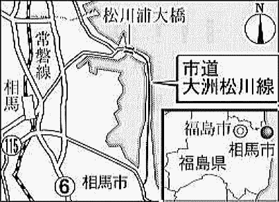 | <総合メニューへ> 久ノ浜・末続 原発立地自治体放射線量 新地町1 新地町2 相馬市松川浦 相馬市大洲松川線 南相馬市沿岸部 飯舘村(放射線量) 久々の会津若松 この後、相馬市の沿岸側にできた車が中央を走れる防潮堤南相馬で南相馬に向かう。 ![]() 撮影:青山貞一 Nikon Coolpix S9900 ![]() 撮影:青山貞一 Nikon Coolpix S9900 トンネルを抜けると下の写真のように、堤防の上に道路が構築されていた。左側が太平洋、右側が松川浦である。 ![]() 撮影:青山貞一 Nikon Coolpix S9900 子の堤防上の道路は、下の河北新報の地図にあるように、市道大洲松川線といい、相馬市から南相馬市の北まで通じている。 ![]() 復旧した市道大洲松川線。右は松川浦。左に太平洋の海原が広がる 出典:河北新報 下はその相馬・市道大洲松川線の最下位についての河北新報の記事。