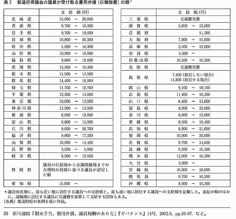 <関連スレッド:地方 沖縄 首都圏 国 経済> 慰安婦像問題でにわかに注目を浴びているサンフランシスコ市ですが、人口規模が68万人の同市の議員数は、何と11人、歳費(報酬)は年間一人約250万円です。 この11人、歳費は年間一人約250万円には誰でも驚くのですが事実です。 ところで、日本の地方自治体議会議員の歳費、費用弁済、政務調査費について自治体別のデータです。小さい字でみえヅらいのですが、拡大してご覧ください。 , 費用弁済とは、議会がある日に議会に出席するともらえる日当です。もともと歳費をもらっている議員になぜ、費用弁済があるのか不思議です。 , 政務調査費に至っては、ごく一部以外、議員が調査、報告し、議員立法や行政事業、予算チェックなどのための費用として使っているかどうかが課題となります。多くの議員は歳費の一部と思っているようです。 以下は地方議員の歳費(報酬)です。平均月額の最高と最低で示してあります。 , ![]() 出典は国立国会図書館のレファレンス 2006年7月号 次は、都道府県議員が受ける費用弁済(日当)です。これは議会、委員会の開催日に出席することで議員がもらえる日当です。 ![]() 費用弁済については、東京都議会議員の音喜多議員が次のブログで痛烈に批判しています。 ◆1日1万円、都議会議員の「費用弁償」は供託(≒受け取り拒否)しております 音喜多議員 |
