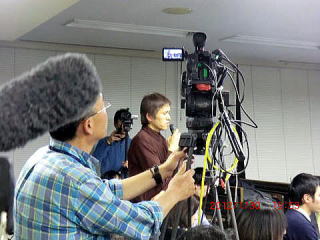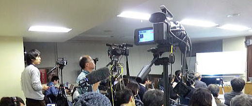![]() ◆独立系メディア E-wave Tokyo最新タイトルバック 以下は青山貞一のプレゼンの最後に使った独立系メディア E-wave Tokyoのタイトルバック動画である。私と池田こみちさんは、2004年以来、劣化する日本のマスメディアの代替メディアとして、独立系メディアE-wave Tokyoをホームページに設置し、数1000に及ぶ論考を執筆、掲載してきたが、昨年春よりUSTREAMとYouTubeを駆使したストリーミング動画配信によって60本ほどの解説や講演、論評、提案などをしている。 その後、河崎健一郎弁護士(国会議員の政策秘書も経験されている)がコーディネイターとなり、1時間弱にわたってふたりで対談し、さらにフロアーの参加者との間で質疑応答を行った。 ![]() 写真撮影:池田こみち (独立系メディアE-wave Tokyo) 対談では、日本における「審議会が抱える諸課題」を中心としつつも、日本の立法過程の実態を赤裸々に紹介するとともに、いかにして日本の立法府が行政をコントロールすることができるか、立法過程論から見て、立法府が本来の立法機能をどうすれば果たすことができるかについて提案した。 ※便宜上、審議会をテーマとしてますが、現実には、審議会、審査会、 委員会、検討会などを遡上にあげて徹底議論しています。 ![]() 左から河崎弁護士、青山貞一、日隅弁護士 写真撮影:鷹取敦 (独立系メディアE-wave Tokyo) ![]() 左が青山貞一、右が日隅一雄弁護士 写真撮影:鷹取敦 (独立系メディアE-wave Tokyo) 私はプレゼンのなかで、米国の市民運動家であるラルフ・ネーダーさんとマサチューセッツ工科大学のノーム・チョムスキー教授について言及したが、日隅さんから「青山さんは日本のラルフ・ネーダーでありチョムスキーだ」と過分のお言葉をちょうだいした。ネーダーさんとチョムスキーさんは私が昔から尊敬するミッション、パッション、アクションを同時に備えた方である。 ![]() 左が青山貞一、右が日隅一雄弁護士 写真撮影:鷹取敦 (独立系メディアE-wave Tokyo) 今回、岩波セミナールームの会場には、主催者のNPJ、ニコニコ動画、IWJ(岩上安身氏主唱)、OurPlanetTV(白石氏)それに独立系メディア E-wave Tokyo(青山貞一・池田こみち主唱)の5つのインターネットメディア(動画)のテレビカメラが設置され、生中継と収録が行われました。インターネットメディア、ソーシャルメディア関係者の皆様、大変ご苦労さまでした。 ![]() 質問する杉原さん 写真撮影:鷹取敦 (独立系メディアE-wave Tokyo) ニコニコ動画では、当日だけで下にあるように18,796名の方々が視聴され、8,268のコメントが寄せられていた。 このような本来、地味な内容の対談に全国津々浦々の多くの方々にご試聴頂深く感謝申し上げたい。インターネットメディア全盛の中で、コミュニケーションのそのものの在り方が変わっていることを実感する! 知らないのは大マスコミだけだろう! ![]() 以下にIWJによるUSTREAM生中継のアーカイブである。 ★青山貞一×日隅一雄対談:審議会が本来の機能を取り戻すために 以下は、主催者自身による動画配信。 ★NPJ(News for the People in Japan)の動画サイト ![]() 写真撮影:鷹取敦 (独立系メディアE-wave Tokyo) また近日中に、E-wave Tokyoの鷹取が収録した動画を高画質でYou Tubeで公開する予定である。 ![]() 写真撮影:鷹取敦 (独立系メディアE-wave Tokyo) なお、 NPJの会長が閉会の辞を話された後、突然、会場に電気が消され、Happy birth day to you!を歌われ、超満員の来場者はびっくり。 この日は日隅弁護士の誕生日だったのだ。 女性軍から誕生日ケーキ(お豆腐を使ったマイクロビオティックケーキ)振る舞われた! ![]() 写真撮影:池田こみち (独立系メディアE-wave Tokyo) ニコニコ動画ならぬ、ニコニコでご満悦の日隅さん! ![]() 写真撮影:池田こみち (独立系メディアE-wave Tokyo) 日隅さん誕生日おめでとう! 下は、終了後の一こま、青山と話している女性は、東京新聞の佐藤直子記者。大変ひさしぶりにお会いした。 ![]() 写真撮影:池田こみち (独立系メディアE-wave Tokyo) 以下は、「審議会革命」の 監修者(青山貞一)あとがき