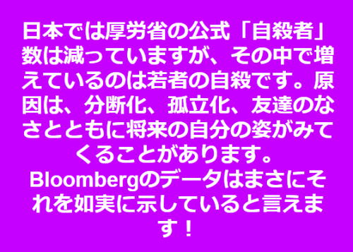 ★ロスジェネ世代の残酷な境遇 結婚や子育てならず社会衰退の要因にも 長周新聞 ![]() ![]() ![]() 出典:OECD ![]() ![]() ![]() ![]() ![]() ![]() ![]() <参考> 安倍首相の海外バラマキ同行企業リスト ◆青山貞一編:安倍首相の海外バラマキと同行企業リスト(全5本) ◆池田こみち:日本の焼却・溶融炉、官民一体の海外売り込み実態 ◆池田こみち:焼却炉の海外受注リスト−個別企業別(1:JEF等) ◆池田こみち:焼却炉の海外受注リスト−個別企業別(2:日立造船) ◆池田こみち:焼却炉の海外受注リスト−個別企業別(3:日立造船) ◆池田こみち:焼却炉の海外受注リスト−個別企業別(4:日立造船) ![]() ![]() ![]() ![]() Facebookでの青山貞一のコメント ![]() 注) 経済60% vs 文化40%論は伊藤寛氏(30年間米国の ワシントンDCに居住するエコノミスト、外交ストラテジスト)の分析。 Facebookでの青山貞一のコメント ![]() 政治では以下の投票率の低下が平成30年間における最大の問題であろう! ![]() 出典:日刊ゲンダイ ![]() ![]() 次は日米安保協条約下での日本の在日米軍駐留の費用について。 ![]() ![]() 「 ![]() ![]() ![]() ![]() ![]() ![]() ![]() ![]() ![]() <参考> ◆青山貞一・池田こみち:国の姿が分かる「世界の中の日本ランキング」 ◆青山貞一:日本・米国・デンマーク 主要指標のランキング(2017) ![]() ![]() ![]() 出典:Bloomberg