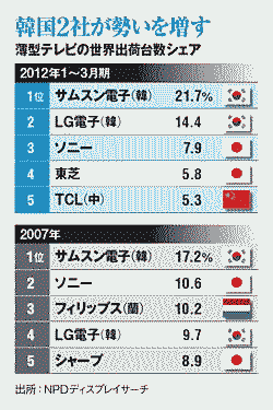 まぁ、かつて日本が欧米の家電業界にしていたことを現在、中国、韓国、台湾、香港がしている訳なので何ともいいようがありません。 技術などといいますが、私が現在、独立系メディアで使っているフルハイビジョン対応のビデオカメラは、中国メーカ直販のものを日本でかうと8000円、同じものを日本のヤシカが売ると2万5000円程度です。両方を持っているので間違いありません。 ◆青山貞一:デジタルビデオカメラ−SDHCで軽量・省エネ・価格革命 http://eritokyo.jp/independent/aoyama-col12181.htm ![]() ◆青山貞一:ユーザー無視で暴利のIT家電〜デジカメ・バッテリー編〜 http://eritokyo.jp/independent/aoyama-col12382.htm ●日本製(Made in Japan)が聞いてあきれる 周知のように現状では、日本製が聞いてあきれます。たとえばパソコンを例にとっても、肝心なCPU(中央演算装置)、ハードディスク、メモリー、マザーボードどれをとっても米国で設計し、アジアなどで製造したものばかりです。肝心なウィンドウズの生産もシンガポールなどで行っています。ウィンドウズの生産とは行っても、ただマザーからコピーするだけですが、マイクロソフト社はそれすらアジア諸国でやっています。 日本製といえるのは、ぜいぜいケースと電源くらいでしょうか? 最高品質の部品を秋葉や通販で購入し、自分で組み立てる(といってもつなぐだけ)で完成するBTOパソコンは、日本大メーカーが売っているPCの半分以下でできます。 それらの部品を買いたたいてかき集め、組み立てるだけ、その組み立てすら、大メーカーは日本でなくアジア諸国でやっているしまつです。 日本メーカーといっても大部分はアジア諸国でつくられています。昨年末、タイの大洪水によって日本で売られる内蔵ハーでディスクが3倍まで跳ね上がりました。日本国内ではほとんどHDDは作られていないことがこれでばれました。昨日、自分のBTOパソコンのためにツクモに発注した2TBのHDDは、7000円台まで下がってきました。 ◆青山貞一:Dタイ大洪水の思わぬ影響〜HDDが3倍に暴騰 http://eritokyo.jp/independent/aoyama-col8008..html これが現実なのです。日本の消費者がもうすこし賢くなり、日本製品ブランドへの鵜呑度に目覚めればいい物をやすく購入できます。 価格コムはじめインターネット検索によってあらゆる物の品質、値段、ショップ、販売形態がすぐに明らかになり、どこにいようと同じ物が手に入る時代になりました。 過去、どれだけ余計なお金を家計にかけていたか、それで日本のGDPに寄与していたかと思うと、ゾーッとします。 民主党になってからトヨタとパナソニックに象徴される自動車と家電業界にひとかたならぬ税金、公金の肩入れをしていましたが、消費者が賢くなればこれがいかに詐欺行為に類するものであるか分かるはずです。 以下は2007年と2012年1〜3月期の液晶テレビのシェアを示している。すでに韓国勢が1位、2位、さらに3位にいるソニーも、肝心な液晶部分を韓国のサムスン電子に大きく依存しているので、3位も実質韓国と言うことになります。 ![]() ●再生可能エネルギー製品でも談合の可能性大! さらに、自然エネルギー、再生可能エネルギーがブームとなっていますが、この分野でも同じです。 その昔、15年以上前、日本政府がメーカーと消費者双方に補助金を出し太陽光パネルの販売促進をしていました。当時、私は米国の太陽光パネルメーカーから日本に平行輸入したところ、国の補助をもらい購入する場合に比べ、同一の資金で2倍のKW数のパネルが買えました。 ここでも国とメーカーと代理店による価格調整があったと推察しています! これについては、以下を参考にしてください。 ◆鷹取敦:環境にやさしい太陽光発電〜その期待と課題〜(ぎょうせい晨・1995.5) http://www.eforum.jp/ashita/ashita-forum1995-05-takatori.pdf 以下に価格コムとECナビをリンクします。ECナビには、青山研究室にいた優秀な学生が就職しています! 価格コム ECナビ |