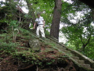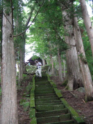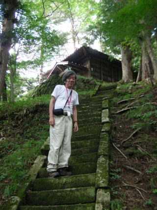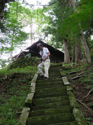 ●赤岩神社を参拝する 赤岩養蚕農家地区の南端の「かいこの家」の道路を挟んだ反対側の鳥居から坂道を登っていくと赤岩神社がある。 赤岩神社はもともと「飯綱神社」と呼ばれていたが、明治41年(1908)に旧赤岩村内の神社を合祀して、赤岩神社となった。旧飯綱神社は、永禄3年(1560)の創建と伝えられている。 この赤岩神社だが、行ってみればすぐに分かるのだが、道路から山道を登り、数種類の石の階段を何段も登った最上部に社があり、本殿はそこからさらに梯子状の階段を上らないとたどり着けない。 以下入口から本殿まで経過を含め写真で紹介しよう! ![]() 赤岩農村集落のメインストリートの南端にある赤岩神社の入口 撮影:青山貞一 Nikon CoolPix S8 ![]() 撮影:青山貞一 Nikon CoolPix S8 そんなこともあり、今まで10数回も赤岩地区にでかけ、養蚕農家をひとつひとつボランティアの案内人に説明を受けながら歩いたり、何度となく(高野)長英の隠れ湯という町営温泉につかるなど出かけていた割には、一度も神社に行くことはなかった。 ![]() メインストリートから階段を20段ほどあがったところ 撮影:青山貞一 Nikon CoolPix S8 動画撮影:青山貞一 Nikon CoolPix S8 撮影:青山貞一 Nikon CoolPix S8 ![]() 階段を上がった後、赤い鳥居がある 撮影:青山貞一 Nikon CoolPix S8 ![]() 赤い鳥居の後は急な坂道を登る 撮影:青山貞一 Nikon CoolPix S8 ![]() 坂道の左手に珍しいススキがある 撮影:青山貞一 Nikon CoolPix S8 ![]() 坂道を登る途中の左右に灯籠がある 撮影:青山貞一 Nikon CoolPix S8 ![]() この後、写真のような林道のような参道をかなり登る 撮影:青山貞一 Nikon CoolPix S8 ![]() 写真は池田さんが参道を登っているところ 撮影:青山貞一 Nikon CoolPix S8 ![]() 参道を行くとはじめて本格的な石段がある。 撮影:青山貞一 Nikon CoolPix S8 ![]() その石段を登った青山 撮影:池田こみち Nikon CoolPix S10 ![]() 階段を上ると相当古い木造の鳥居がある。右は手水舎 撮影:青山貞一 Nikon CoolPix S8 ![]() 二つめの鳥居から次の階段を登る 撮影:池田こみち Nikon CoolPix S10 ![]() 登ると今度は石灯籠がある 撮影:青山貞一 Nikon CoolPix S8 ![]() 石灯籠からさらに崩れかかった石段が40−50段続く 撮影:池田こみち Nikon CoolPix S10 ![]() 青山がその石段を登っているところ 撮影:池田こみち Nikon CoolPix S10 ![]() 何しろステップの幅が短く危ない 撮影:池田こみち Nikon CoolPix S10 ![]() この写真は降りているところ 撮影:池田こみち Nikon CoolPix S10 ![]() 登る途中から下を見たところ 撮影:青山貞一 Nikon CoolPix S8 ![]() 石段の途中の青山。背景に神社の拝殿が見える 撮影:池田こみち Nikon CoolPix S10 ![]() 赤岩神社の拝殿。 木造で相当の年数がが経っている 撮影:青山貞一 Nikon CoolPix S8 ![]() 拝殿前の筆者。この日は暑くTシャツ一枚だが、参拝する 撮影:池田こみち Nikon CoolPix S10 ![]() 第一社の裏はこんなになっている。実は右側に階段があるが、 ここからはなぜか本殿には上れない 撮影:池田こみち Nikon CoolPix S10 ![]() 拝殿の後にある上の写真の階段は途中で無くなっていて、上の写真から上には登れない 撮影:青山貞一 Nikon CoolPix S8 ![]() 拝殿から脇の断崖を登った上で本殿に登る石段を登る 撮影:青山貞一 Nikon CoolPix S8 ![]() これが断崖絶壁の上にある本殿。ここでも参拝 撮影:青山貞一 Nikon CoolPix S8 ![]() 本殿は入れない。本殿の外から写した内部 撮影:青山貞一 Nikon CoolPix S8 ![]() これは本殿から下にある拝殿を写したもの 撮影:青山貞一 Nikon CoolPix S8 ![]() 池田さんは本殿からさらに上の崖への登山にトライした 撮影:青山貞一 Nikon CoolPix S8 ![]() 結局、危険なので折り返した 撮影:青山貞一 Nikon CoolPix S8 登山同様、実は登るより降りる方がさまざまな意味で危険性が高い。別に急ぐ必要もないのでゆっくり一歩一歩無事に降りることが出来た。 何しろ昨年11月9日に自宅の階段を踏み外し、第二頸椎を骨折し九死に一生を得た。今後、このような大怪我をしないように祈り、赤岩神社への参拝を終えることが出来た! ![]() 撮影:青山貞一 Nikon CoolPix S8 以下は、本殿、拝殿の建築様式など。 赤岩神社本殿 建築形式:隅木入りの一間社春日造、柿葺。彫刻が全体に施され いる。北関東特有の手法とも。 赤岩神社拝殿 建築物の間口は三間、奥行は五間、入母屋造妻入で、棟札より 大正3年に建てられたことが分かる。 つづき |