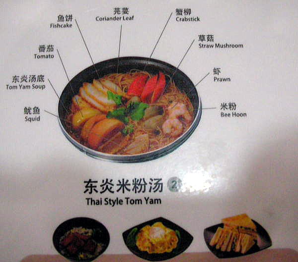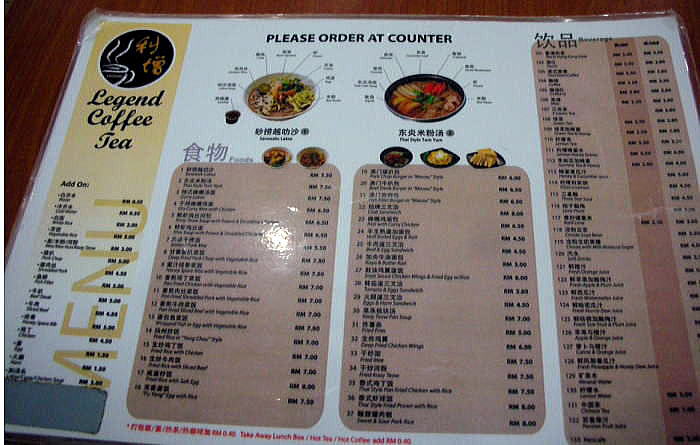 Borneo)の庶民的なレストランで頂いた食事です。中華風担々麺、魚介ピラフ、インド風カレーそれに2つのMサイズ紅茶で締めて900円でした!