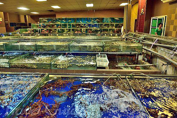 もっぱら、2月1日の夜、コタキナバル中心市街地にありますウォーターフロントの市場の隣の魚介レストランでも、あらかじめ客に泳いでいる魚を見せて選んでもらい、それをすぐに調理する大きな店がありました。
