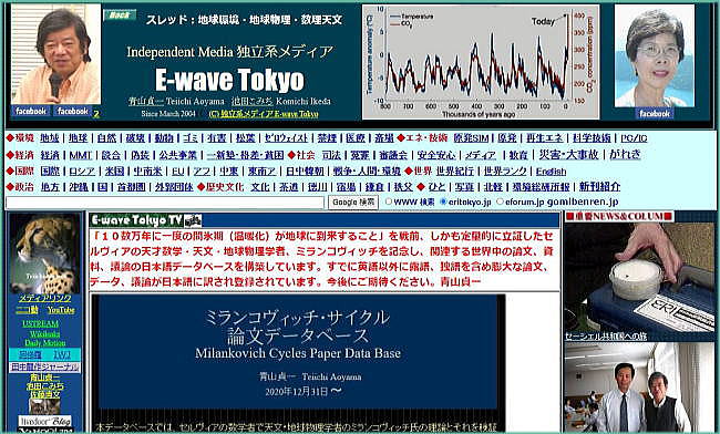 ミランコヴィッチ論文などの 日本語データベース構築について Milankovich Cycles Paper Data Base 青山貞一 Teiichi Aoyama 2020年12月31日~ |
