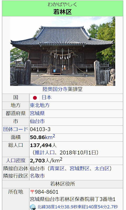 以下は仙台市若林区の概要である。