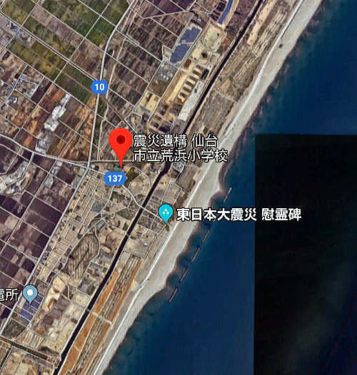 若林区では沿岸を走る国道10号線の近くにある現在は遺構となっている仙台市立荒浜小学校に立ち寄った。
