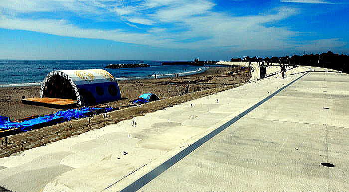 | <総合メニューへ> 多賀城市 塩釜市 利府町 七ヶ浜町1 七ヶ浜町2 七ヶ浜町3 七ヶ浜町4 七ヶ浜町5 松島町1 松島町2 東松島市1 東松島市2 東松島市3 ◆七ヶ浜町沿岸3 ◆七ヶ浜町の堤防 ![]() 出典:グーグルマップ ![]() 出典:グーグルマップ ◆七ヶ浜町菖蒲田海浜公園の整備方針 下は七ヶ浜町の南東部の菖蒲田海浜公園の整備方針である。その中心は海浜の海水浴場に沿ってつくられた大堤防である。 ![]() 出典: 菖蒲田浜・汐見台南 - 七ヶ浜町整備方針 下は3.11の後、構築した海岸堤防の竣工記念碑である。 七ヶ浜町では、菖蒲田浜・汐見台南 - 七ヶ浜町整備方針に沿い、南東部の海浜を津波対策としてだけでなく、町を挙げて町民、県民、観光客らのリゾートを考慮した親水性、リクレーション性の高い堤防を設計、施工していた。 ![]() 撮影:池田こみち Nikon Coolpix S9900 2018-6-29 菖蒲田海浜に整備された大堤防。 ![]() 撮影:青山貞一 Nikon Coolpix S9900 2018-6-29 下は真夏の海水浴時の風景です。 ![]() 出典:グーグルマップストリートビュー 2016年7月 ![]() 出典:グーグルマップストリートビュー 2016年7月 ![]() 撮影:池田こみち Nikon Coolpix S9900 2018-6-29 ![]() 撮影:青山貞一 Nikon Coolpix S9900 2018-6-29 ![]() 撮影:青山貞一 Nikon Coolpix S9900 2018-6-29 ![]() 撮影:青山貞一 Nikon Coolpix S9900 2018-6-29 海岸一帯で使える無料のWiFiが用意されている。 ![]() 撮影:青山貞一 Nikon Coolpix S9900 2018-6-29 堤防のすぐ内側(陸側)にある家の外壁に3.11津波が来た時の高さの表示があった。 ![]() 撮影:青山貞一 Nikon Coolpix S9900 2018 おおよそ5mか。 ![]() -6-29 ![]() 撮影:池田こみち Nikon Coolpix S9900 2018-6-29 下は3.11津波による犠牲者の慰霊碑である。七ヶ浜町では3.11により55人の犠牲者が出ている。 ![]() 撮影:青山貞一 Nikon Coolpix S9900 2018-6-29 ここでの空間放射線量は、0.10μSv/hであった。東京のほぼ2倍の線量である。 ![]() 撮影:青山貞一 Nikon Coolpix S9900 2018-6-29 七ヶ浜町4につづく |