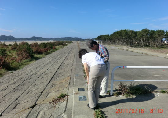 | <総合メニューへ> 多賀城市 塩釜市 利府町 七ヶ浜町1 七ヶ浜町2 七ヶ浜町3 七ヶ浜町4 七ヶ浜町5 松島町1 松島町2 東松島市1 東松島市2 東松島市3 ◆東松島市沿岸2 ![]() 出典:東北地方太平洋沖地震を教訓とした地震・津波対策に関する専門調査会配付資料 ◆東松島市 ![]() 出典:グーグルマップ ところで、2011年9月以降、私たちは何度か東松島市の松島町側の海岸を詳細に調査している。そこは航空自衛隊東基地の滑走路の西側の一角である。 それは下のグーグルマップの調査地点と書いた沿岸地域である。 ちょうど、川を挟んで自衛隊基地の滑走路の西側にあるが、僅かに基地の敷地から外れているため、進入禁止とはなっていない。 ![]() 出典:グーグルマップ とくに3.11の津波の大きな被害を受けたのは地図上で洲崎海岸の背後地である。この洲崎海岸には1996年6月に造成された堤防があったが、この堤防は低く、3.11の津波によって軽く超えられ、背後地の住宅が壊滅的な被害を受けていた。 ![]() 出典:グーグルマップ 下がその洲崎海岸の堤防である。この程度の堤防は3.11の津波であれば簡単に超えてしまう。この写真の撮影は、2011年9月である。 ![]() 撮影鷹取敦 カシオ EX-H20G 2011年9月17日 下は洲崎堤防の上に乗り、竣工年のプレートを青山、池田がチェックしているところである。堤防自身は堅牢にできており、写真でわかるように、3.11の津波でもびくともしなかったが、高さが低すぎ、簡単に乗り越えられてしまったのである。 ![]() 撮影鷹取敦 カシオ EX-H20G 2011年9月17日 下はその竣工年が書かれたプレートである。1996年6月とある。 ![]() 撮影鷹取敦 カシオ EX-H20G 2011年9月17日 ![]() 撮影鷹取敦 カシオ EX-H20G 2011-9-18 ところで、おそらくそれほど知られていないが、この洲崎堤防の背後地にある住宅地は、壊滅的な影響、被害を受けていたのである。 というのも、東松島市では、3.11の津波によって1035人もの犠牲者(死亡者)が出ていたからだが、おそらくその多くはこの地域に住んでいた人々のはずである。この犠牲者数は、宮城県内では、石巻市に次いで2番目に多いのである。 東松山市洲崎の堤防だが、その後、まったく堤防を高くするなどの対策は行われていないことが、2013年5月に撮影された以下の写真から分かる。 ![]() 出典:グーグルマップストリートビュー 2013年5月撮影 一方、低い堤防の背後を見ると、建築規制措置もとられていないようだ。 以下のように住宅が建っている。これらの住宅は、堤防から約1km背後にある東名地区であるが、堤防が低く、津波が容易にここまで押し寄せていたことがわかる。 堤防から東名住宅地までは600m-1km離れているものの、その間、地形は平たんであり、3.11級の津波が襲来すると、この辺りまで海水は押し寄せるものと推察される。 ![]() 出典:グーグルマップストリートビュー 2013年5月撮影 ![]() 出典:グーグルマップストリートビュー 2013年5月撮影 以下は、旧野蒜駅跡で低い堤防から600mほどの位置にある。 ![]() 出典:グーグルマップストリートビュー 2013年5月撮影 東松島市3につづく |