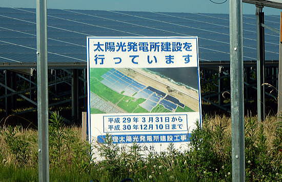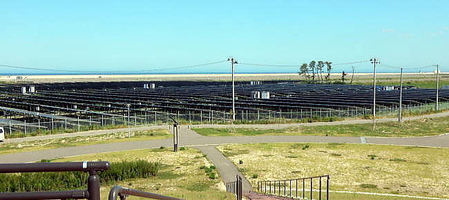 | <総合メニューへ> 調査の内容と方法 基本データ 山元町1 山元町2 亘理町1 亘理町2 亘理町3 亘理町4 亘理町5 岩沼市1 岩沼市2 ◆亘理町沿岸域3 ところで、亘理町の沿岸部には、亘理太陽光発電所の建設工事現場があった。 この太陽光発電所は非常に大規模で、吉田浜防災公園と「避難丘」を中心にその周りに太陽光パネルが敷きつめられていた。 私たちは全国各地でメガソーラーを見てきましたが、これほど大規模な太陽光発電は、見なことがないくらいだ。 後述するように、この太陽光発電所の発電規模は出力約80MWであり、まさにメガソーラーである。 ![]() 撮影:青山貞一 Nikon Coolpix S9900 2018-6-29 ![]() 撮影:青山貞一 Nikon Coolpix S9900 2018-6-29 ![]() 撮影:青山貞一 Nikon Coolpix S9900 2018-6-29 下は、亘理町の太陽光パネルの設置状況である。 ![]() 出典:グーグルマップ 下は上記の衛星写真のズームアップである。 ![]() 出典:グーグルマップ ![]() 撮影:青山貞一 Nikon Coolpix S9900 2018-6-29 以下は「避難丘」から見た太陽光パネルである。 ![]() 撮影:青山貞一 Nikon Coolpix S9900 2018-6-29 ![]() 撮影:青山貞一 Nikon Coolpix S9900 2018-6-29