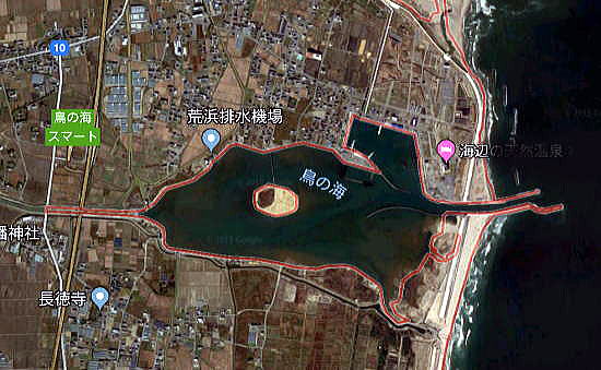 | <総合メニューへ> 調査の内容と方法 基本データ 山元町1 山元町2 亘理町1 亘理町2 亘理町3 亘理町4 亘理町5 岩沼市1 岩沼市2 ◆亘理町沿岸域5 亘理町の沿岸部には下の地図にあるように、海から陸側に汽水湖が入り込んでいる。 ![]() 出典:グーグルマップ 下はその湖を拡大したものだが、これは「鳥の海(とりのうみ)」と呼ばれている。 ![]() 出典:グーグルマップ ![]() 撮影:青山貞一 Nikon Coolpix S9900 2018-6-29 ![]() 出典:グーグルマップ 」撮影:青山貞一 Nikon Coolpix S9900 2018-6-29 この鳥の海は、宮城県亘理郡亘理町の太平洋岸に位置する汽水湖である。