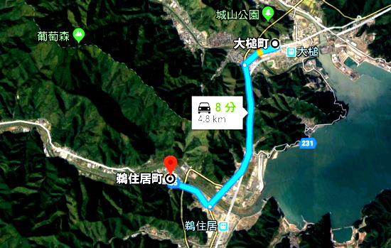 釜石市の鵜住居から大槌町までは、以下のグーグルマップにあるように、わずか5km足らず車で約10分で大槌町の入り口まで到着する。