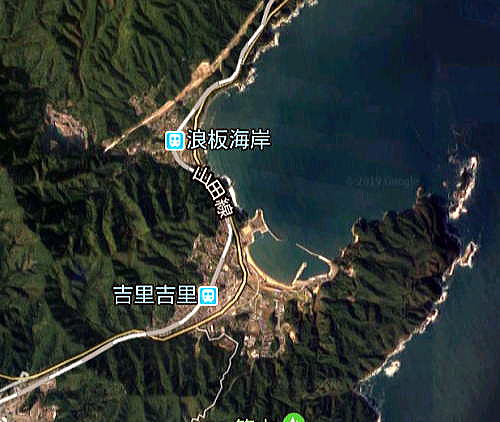 大槌町は大槌湾に面する地域と、下の2つのグーグルマップにあるように、それ以外に北部に吉里吉里(キリキリ)地区とその北にある浪板海岸地区もある。
