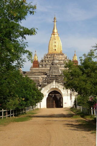 | (77) バガンの全体地図 (78) バガンの概要 (79) バガンの歴史(1 (80) バガンの歴史(2) (81) バガン王朝とは(1) (82) バガン王朝とは(2) ◆パガン王朝の概要 王権 国王は専制君主であり、その権力は絶大であったとされ、碑文には王は万物を支配する人物と刻まれています。 一方で王は「菩薩」の化身として崇められている白象の所有者であるとも見なされていました。原則として国王は世襲であり、次代の王に即位するのは先代王の直系の卑属でした。親から子へ王位が渡ることがほとんどでしたが、兄から弟へという場合もあり、チャンシッターは孫のアラウンシードゥーを後継者に任じていました。 官制 官僚機構の最上位は大臣であり、国政全般を取り仕切りました。大臣は国王の信頼が最も厚い者が任ぜられました。大臣は原則として複数でしたが人数は2人から7、8人までの幅がありました。 これ以外の重要官職は、軍事面では司令官及び各武将や水軍の将、司法官は裁判官及び検察官、書記長及び書記官、地方行政組織各段階の長である郡長・町長・村長、租税面ではカンコウン米を管理する穀倉奉行などがありました。その他、祭祀職として占星術師と婆羅門、侍医がいた。王宮内で国王の身近にあって公私ともに世話をするミンチンとミンセーと呼ばれる男性の役人がいました。 宗教 パガン王朝の国教は上座部仏教です。アノーヤターはタトゥンから招聘した高僧シン・アラハンにより上座部仏教に改宗するとともに、民衆に影響力を持つアリー僧を強制的に還俗させました。アノーヤターがタトゥンに進攻した理由について史料は経典と仏舎利を入手するためと伝えています。 1190年に留学を終えてセイロン島から帰朝したタラインの仏僧チャパタが創設した南伝系の大寺派が、王朝の国教に据えられました。チャパタの死後に大寺派は三つに分かれ、タトゥンに起源を持つ上座部仏教の一派とともに、いずれの宗派も在家信者への布教活動に熱心だったとされます。 伝道活動は陸路と河川路の両方を経由してタイ、ラオス、カンボジアにわたり、今日の東南アジアにおける上座部仏教の地位を形成しています。 上座部仏教以外に大乗系、密教系、ヒンドゥー教も王朝の宗教として併存しており、上座部仏教とそれらの宗教の違いは明確に認識されていなかったとされます。住民にはナーガ信仰を持つものも多く、宮廷行事には、ヒンドゥー教の占星術師、バラモン僧が参画していました。 上座部仏教を導入したアノーヤターは大乗仏教寄りの信仰の持ち主であり、アノーヤターの名が刻まれた観音像が多く発掘されています。チャンシッターの治世まで大乗仏教、密教、ヒンドゥー教はパガンで広く受け入れられ、王朝末期の1255年に王妃タンブーラによって建立されたパヤートンズー寺院には密教的な要素の強い壁画が描かれています。 13世紀以降には、密教的な要素の強いアラニャ僧団が勢力を拡大します。森の中で活動する出家僧の集団を母体としており、マハーカサッパの元で勢力を拡大しました。王朝滅亡後の1388年の碑文には、マハーカサッパがナンダウンミャーの病を治癒したことで王から財宝と土地を寄進された伝説が記されています。1240年代にチャウセー地方に進出、1247年から1272年かけてシュエボー、チンドウィン一帯の土地を購入して寺領を増やしています。 建築 パガン王朝時代に建築された寺院、仏塔は、ビルマ芸術の頂点と言われています。 特にこの時代は大型寺院の建築技術に著しい発展が見られ、シュエズィーゴン・パゴダは後世に建造された仏塔の基本形となりました。ピュー族の文化から受け継いだ迫持工法によるアーチ建築が特徴であり、ナラパティシードゥー以降は明るい色彩の窟院、仏塔が建てられるようになりました。 ![]() パヤートンズー寺院 出典:Wikipedia 王侯貴族などの富裕層は来世の幸福を願って功徳を積むため、宗教施設の建設と三宝への寄進を盛んに行いました。寺院の建立には多額の費用が掛かり、1196年にナラパティシードゥーが建立した仏塔は一基あたり44027チャッ(Tyat、現在もミャンマーの通貨単位に名前を残す)の銀が払われた。 ![]() アーナンダー寺院 出典:Wikipedia 成人男子の奴隷1人の価格は銀20チャッから25チャッであり、仏塔の建立に奴隷2200人と同じ支出を要した計算になります。別の碑文には、窟院の建設費用は施設一式を含めて20000チャッが払われたこと、仏像、窟院、僧院、塀の一式を建造するのに銀10000クラヤブ(165000グラム、奴隷300人超)[63]の出費があったと書かれています。 そして建築事業に従事する労働者が報酬として支払われる銀、衣服、食料を求めてパガンに多く流入していました。 家屋の素材は身分によって異なり、高位の者は木造の邸宅に住み、一般民衆はニッパヤシ、茅葺の屋根、竹壁の家に住んでいました。煉瓦は仏教建築にのみ許される特別な建材であり、建築面における聖俗の線引きが、民衆の信仰を固くする一因となったとも言わ