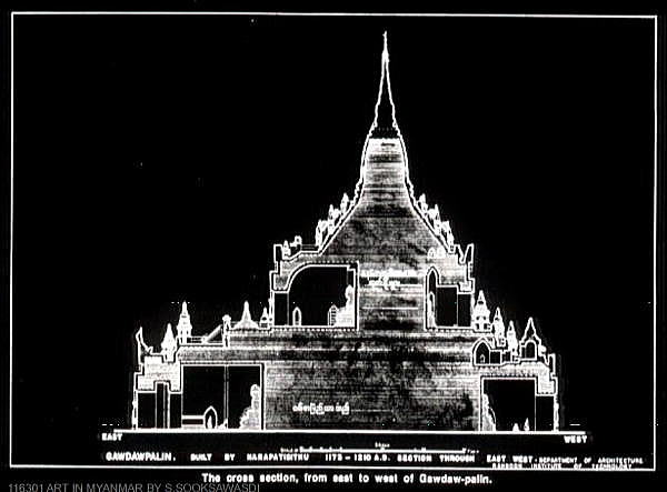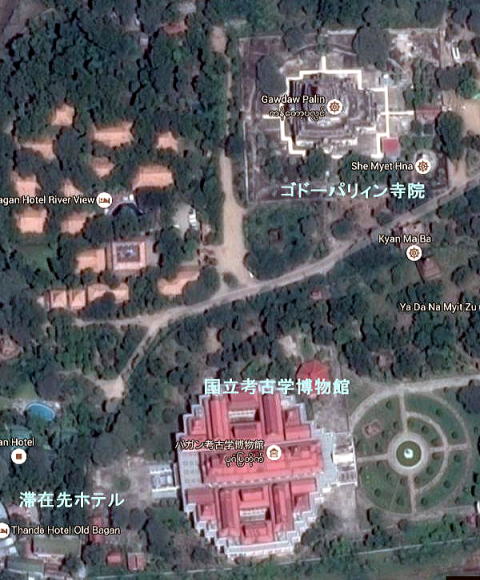 | (86) ゴドーパリィン寺院 (87) ミマラン僧院 (88) パホタミャー寺院 (89) ガーチャウェ・ナダウン・パゴダ (90) ナッラウン寺院 (91) タビィニュ寺院(1) (92) タビィニュ寺院(2) (93) ピタカタイ (94) ホテルでの夕食と操り人形 ホテル到着後、ホテルに近いオールドバガンの寺院やパゴダを集中的に歩いて探索することにしました。 ◆ゴドーパリィン寺院 Gawdaw palin Temple このゴドーパリィン寺院は、下の地図から明らかなように、滞在先のホテルから最も近い巨大な寺院です。滞在先ホテルは左下にあります。隣には考古学博物館があります。ゴドーパリィン寺院は、考古学博物館の北側にあります。 寺院の高さはタビィニュ寺院寺院の61mについでバガンで2番目に高い寺院とのことです。 ![]() 出典:グーグルマップ ![]() 撮影:青山貞一 Nikon Coolpix S9900 2016-6-6 ![]() 撮影:青山貞一 Nikon Coolpix S9900 2016-6-6 ![]() 出典:http://www.thaiartcmu.com/e_book/116301_pp07_art_history_bagan_3.pdf 以下はゴドーパリィン寺院の概要解説です。 ◆ゴドーパリィン寺院 Gawdawpalin Temple ・遺跡の種類:V型寺院 ・立地位置 :Meemalaung 僧院の北 ・立地地域 :オールドバガン ・創 建 者:Narapatisithu王 ・年 代:11世紀 ・遺跡番号 :− ゴドーパリィン寺院は、Narapatisithu王によってスラマニ寺院建設後に創建されました。しかし、王が建設を完成させることはなく、息子のHtilominloによって完成されたのです。位置は、Bu パゴダの南3マイルのところで、エイヤワディー川の堤上でした。高さは約180フィートあり、建築構造は、スラマニ寺院に似た一般的な形でした。 Narapatisithu王は、非常に大きな力を持ったことを誇って、彼の権力は祖先達に匹敵する以上に輝かしいものになったと宣言したと言われています。しかし、そのすぐ後、彼の悪行・非行に対する罪滅ぼしとして、先祖達に敬意を表しに来るまで、彼は失明してしまったのです。 ゴードパリィンは、バガンで最大の寺院のひとつに数えられます。寺院は後期の様式である二層の構造となっています。地上面は四角で、4面すべてに柱廊式玄関(ポーチコ)がありますが、東側の柱廊式玄関は他に比べて出っ張っています。地上階は、丸天井(アーチ形天井のある)廊下が中央ブロックの周りを取り囲み、そのブロックの4面の壁には、仏像が安置されています。 ![]() 撮影:池田こみち Nikon Coolpix S9900 2016-6-6 下は遠くから見たゴーダパリン寺院です。 ![]() Gawdawpalin Temple (トリップアドバイザー提供) ![]() Gawdawpalin Temple (トリップアドバイザー提供) 以下は寺院に鎮座する仏像です。 ![]() 出典:http://bagan.travelmyanmar.net/mimalaungkyaung.htm ![]() This photo of Gawdawpalin Temple is courtesy of TripAdvisor ![]() This photo of Gawdawpalin Temple is courtesy of TripAdvisor ![]() This photo of Gawdawpalin Temple is courtesy of TripAdvisor ![]() Gawdawpalin Temple (トリップアドバイザー提供) つづく |