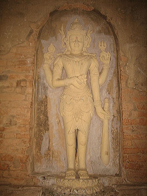 以下はナッラウン寺僧の解説です。 ◆ナッラウン寺僧 Nathlaung Kyaung ・遺跡タイプ : タイプ1 寺院 (Gu Paya) ・場 所 ;タビィニュ寺院の西 ・地 区 :オールドバガン ・創 健 者 :Taungthugyi王 ・創 建 年 :931年 ・遺跡番号 : 1600 ナッラウン寺僧院はヒンズー教の寺院で、 ビシュヌ (ヒンズー教における三大神格の一つで保存をつかさどる神)に奉納した寺院です。この寺院は、ビルマのオールドバガンの城壁の内側にあります。 ナッラウン寺僧院は、タビィニュ寺院の西側に位置しており、バガンに残された唯一のヒンズー教の寺院です。ナッラウン寺僧院は、11世紀、アナーヤータAnawratha王時代に建設されたバガンで最も古い寺院でです。一部の歴史家はこの寺院は10世紀、Nyaun-uSawrahan 王(Taungthugyiとしても知られている) の時代に創建されたと主張しています。 寺院は、もともと、ビルマのインド人ヒンズー教徒やその他、商人たち、王に仕えるBrahmin(ヒンズー教の司祭階級で最高位の人々)のために11世紀に建設されましたた。創建当初の建物の構造は既に失われていますが、メインホールは今も残っています。 もともとの寺院には、ビシュヌの神の10体の化身の像が祭られており、その中には、ゴータマ・ブッダも含まれていました。 しかし、今日では、7体が残って居るのみです。煉瓦造りの寺院は孤立し、長い間、修復もされないまま放置され、地震で被害を受けました。 ![]() Source:http://bagan.travelmyanmar.net/nathlaungkyaung-temple.htm 寺院は、四角い梁の上に建っており、上層部のテラスに向けて急な上りとなっています。10世紀頃に、インド人の職人達がバガン(パガン)に連れてこられ、この寺院やその他の寺院の建設に携わった可能性もあります。 バガンで最古の寺院として、この建築様式は、その後のバガンにおける多くの寺院建築構造に影響を与えまた、霊感を与えることになり、それによってバガン王国における仏教が確立されることになったと言えます。 ![]() Source:http://bagan.travelmyanmar.net/nathlaungkyaung-temple.htm 以下はナッラウン寺院の平面図です。 ![]() Source:http://bagan.travelmyanmar.net/nathlaungkyaung-temple.htm 以下はナッラウン寺院の英語版Wikipediaの写真です。 ![]() Source:English Wiki 以下はヒンズー教寺院玄関の仏像です。 ![]() Images of Hindu Gods at the entrance Source:English Wiki 以下はナッラウン寺院にある7つの仏像のうちのひとつです。もともとはヴィシュヌに捧げられた10の偶像ですが、そのうち3つの像は他に移され、ひとつはベルリンダーレム美術館にあります。 ![]() Source:English Wiki ナッラウン寺院にある以下の石板の碑文は、ビルマ語で書かれています。 ![]() Source:English Wiki つづく |