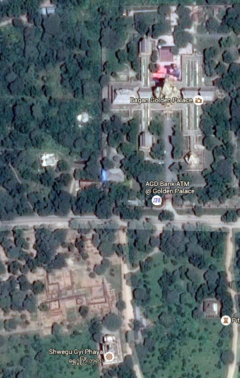 | (95) ホテルの朝食と庭園散策 (96) シュエグージー寺院 (97) 旧王宮遺跡発掘現場 (98) タラバー門 ◆旧王宮遺跡発掘現場 ところで、シュエグージー寺院の北側では旧王宮の遺跡の発掘作業が行われています。 シュエグージー寺院のテラスからもこれら大々的に行われている遺跡発掘が見れます。また新王宮側の道路からもその一部を見ることができます、 なお、現在の黄金王宮(Bagan Golden Palace)は、発掘現場の斜め前に再現したものです。この日、最初に訪問しますが、午前9:30に開場することもあり、この現場を視察していました。 下はグーグルマップの衛星写真でみるシュエグージー寺院の北側の掘削現場です。 ![]() 出典:グーグルマップ(衛星写真) 一方、下の写真は新旧の王宮の場所と位置関係を示した衛星写真です。右上が現在の王宮、左下が旧王宮の遺跡です。 ![]() 出典:グーグルマップ(衛星写真) 下はシュエグージー寺院から見た発掘、保管の現場の写真です。これらはトリップアドバイザーの写真で紹介しています。 ![]() This photo of Tamote Shwe Gu Gyi Pagoda is courtesy of TripAdvisor ![]() This photo of Tamote Shwe Gu Gyi Pagoda is courtesy of TripAdvisor ![]() This photo of Tamote Shwe Gu Gyi Pagoda is courtesy of TripAdvisor ![]() This photo of Tamote Shwe Gu Gyi Pagoda is courtesy of TripAdvisor 下の写真はこれらの遺跡の企画、計画、実施、管理を行っている国立考古学及び博物館省のバガン事務所の看板です。 ![]() 出典:青山貞一 Nikon Coolpix S9900 2016-6-7 以下の写真には、「アノヤ-ター王などの王宮掘削現場」とあります。 ![]() 出典:青山貞一 Nikon Coolpix S9900 2016-6-7 王宮側からもフェンス越しに見えます。この現場はもともとバガン王宮があった場所です。 以下は新王宮側の道路からフェンス越しに見た掘削現場の一部です。 ![]() 出典:青山貞一 Nikon Coolpix S9900 2016-6-7 ![]() 出典:池田こみち Nikon Coolpix S9900 2016-6-7 ![]() 出典:池田こみち Nikon Coolpix S9900 2016-6-7 つづく |