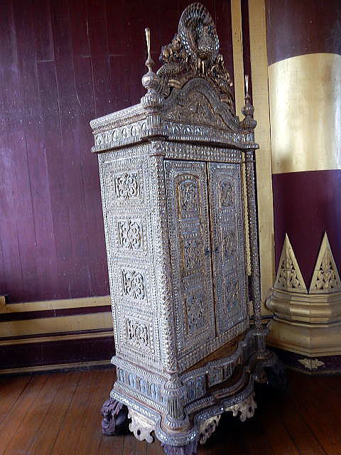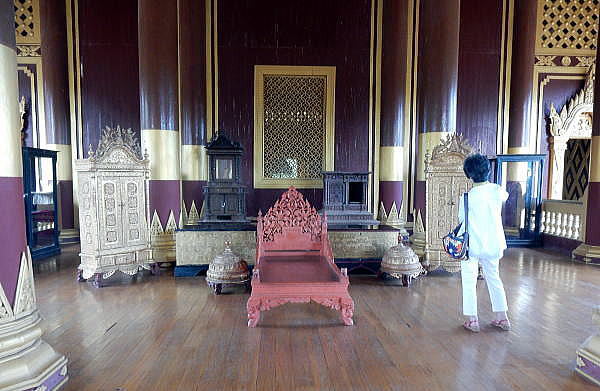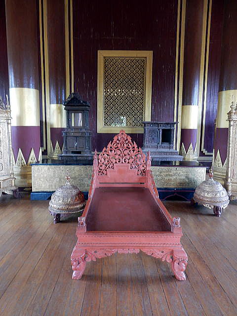 | (99) バガン黄金王宮(1) (100) バガン黄金王宮(2) (101) バガン黄金王宮(3) (102) バガン黄金王宮(4) 以下は主に王宮のプライベート空間、すなわち王が日常的に生活する建物と家具、調度類です。マンダレーの王宮でも妃は別の建物、部屋となっています。もしくは、ベッドが小さいこと、ピンク色であること、調度が女性用のものと思えるので、以下は妃のものかも知れません。 ![]() 撮影:青山貞一 Nikon Coolpix S9900 2016-6-7 ![]() 撮影:青山貞一 Nikon Coolpix S9900 2016-6-7 ![]() 撮影:青山貞一 Nikon Coolpix S9900 2016-6-7 下の写真は、ベッドの長さを見るために青山が並んで寝てみたものですが、青山が164cmなので、ベッドは155cmほどしかありません。やはり妃用のものでしょうか・ ![]() 撮影:池田こみち Nikon Coolpix S9900 2016-6-7 ![]() 撮影:池田こみち Nikon Coolpix S9900 2016-6-7 以下は家具や調度品です。すばらしい木彫が施されているものもあります。 ![]() Cette photo de Bagan Golden Palace est fournie gracieusement par TripAdvisor ![]() 撮影:青山貞一 Nikon Coolpix S9900 2016-6-7 ![]() 撮影:青山貞一 Nikon Coolpix S9900 2016-6-7 ![]() 撮影:青山貞一 Nikon Coolpix S9900 2016-6-7 ![]() 撮影:池田こみち Nikon Coolpix S9900 2016-6-7 つづく |
