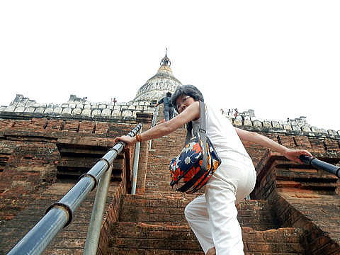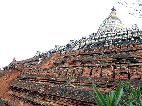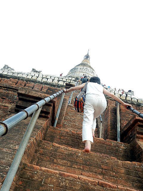 | (116) ローカテェイッパン寺院 (117) シュエサンドーパゴダ(1) (118) シュエサンドーパゴダ(2) (119) シュエサンドーパゴダ(3) (120) シュエサンドーパゴダ(4) (121) 馬車でホテルに戻る 下は英語版Wikipediaにあったシュエサンドーパゴダの写真です。 撮影時に人がいないのですが、私たちが到着した時は、下の写真にあるように、世界中からたくさんの観光客が来て、上の方まで登っていました。 ![]() 出典:English Wikipedia 下はトリップアドバイザーの写真です。これも誰も登っていません。 ![]() Cette photo de Pagode Shwesandaw (Bagan) est fournie gracieusement par TripAdvisor 下は下からパゴダを撮影した写真ですが、ご覧のように上を目指してたくさんのひとがパゴダに上っています。 ![]() 撮影:青山貞一 Nikon Coolpix S9900 2016-6-7 ![]() バガン (トリップアドバイザー提供) 下は池田が登っている写真です。両手でしっかり手すりを持っています。歓談の一ステップが高く、しかも急なので、結構怖いです! ![]() 撮影:青山貞一 Nikon Coolpix S9900 2016-6-7 ![]() 撮影:青山貞一 Nikon Coolpix S9900 2016-6-7 池田はかなり上の展望台まで登ったのですが、青山は重篤な気管支喘息患者なので、万一発作が起きると滑落する可能性が大きいので、比較的低い展望台で撮影することにしました。 その後も続々と多くの人が上ってゆきます。 ![]() 撮影:青山貞一 Nikon Coolpix S9900 2016-6-7 つづく |