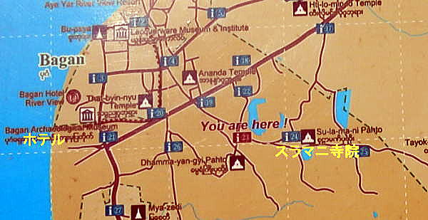 | (122) 自転車でスラマニ寺院へ (123) ダマヤンジー寺院(1) (124) ダマヤンジー寺院(2) (125) ダマヤンジー寺院(3) 休憩後、農道のような道をさらに進むと、右手にバガンで最大規模のパゴダをもつダヤンジー寺院 Dahmmayan Gyi Phayaが見えてきます。 最大規模の意味は高さでは61mのダビィニュー寺院があるので、パゴダ最下部の面積のはずです。実際、そのように見えます。 さらに進むと、右手にバガンで最大規模のパゴダをもつダヤンジー寺院 Dahmmayan Gyi Phayaが間近に見えてきます。 出典:グーグルマップ ![]() Source:The Map of Bagan 下はダマヤンジー寺院とスラマニ寺院の位置関係です。 私達は左上から自転車で進み三叉路で一旦休憩しました。この三叉路からダマヤンジー寺院まで参道があります。 ![]() ダヤンジー寺院とスラマニ寺院の位置関係 出典:グーグルマップ 下がダバヤンジー寺院です。まるでエジプトのピラミッドのように見えます。 この寺院はよくバガンを象徴する寺院として数々の資料やグラビアに掲載されています。しかし、ダバヤンジー寺院を創建したバガンのナラトゥー王には、いろいろな言い伝えがあります。 ![]() 撮影:青山貞一 Nikon Coolpix S9900 2016-6-8 ダマヤンジー寺院の外観は非常に重厚、壮大です。 ![]() 撮影:池田こみち Nikon Coolpix S9900 2016-6-8 近寄ると、四方向に10mほどの建築物があります。 ![]() 撮影:青山貞一 Nikon Coolpix S9900 2016-6-8 つづく |