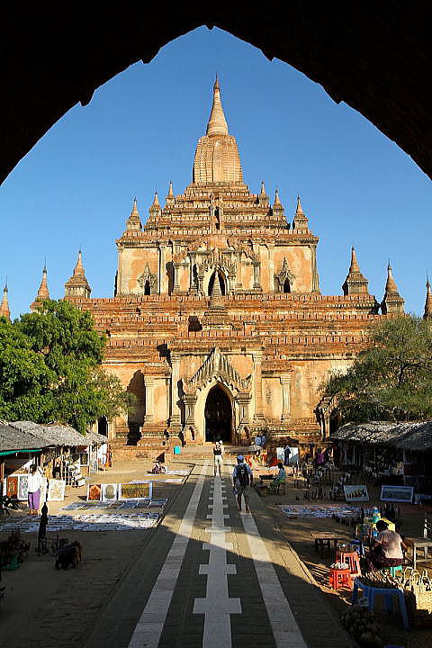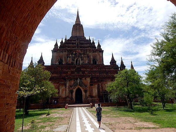 | (126) スラマニ寺院(1) (127) スラマニ寺院(2) (128) スラマニ寺院(3 (129) スラマニ寺院(4) (130) スラマニ寺院(5) (131) スラマニ寺院(6) (132) スラマニ寺院(7) (134) バガン草原で迷子に (135) バガン最後の夕食 ◆スマラニ寺院の正面 この後、私達は例によって靴と靴下を脱ぎ、スラマニ寺院に入ります。 以下はスラマニ寺院を背に、入って来た門の側を撮影した写真です。やはりほとんど人気がありません。 ![]() 撮影:青山貞一 Nikon Coolpix S9900 2016-6-8 下はスラマニ寺院の正面の写真です。 この日は猛暑(猛熱)でしがが、私たちは写真のような寺院に通ずるアプローチを、はだして歩いて向かいました。 走って行きたいいくらいです。写真に見える石畳のような通路も、ものすごい灼熱ですごく熱せられています。ただ、バガンの地元の住民はほとんど芋回せずに歩いて行きます。修行でもあるのかも知れません。 ![]() 撮影:青山貞一 Nikon Coolpix S9900 2016-6-8 上の写真はで逆光で撮影していましたが、下の写真ではスラマニ寺院の正面が綺麗に映っています。 ![]() Source:English Wikipedia ◆スラマニ寺院の全貌と遠景 スラマニ寺院は、ダマヤンジー寺院と同じレンガ造りですが、ダマヤンジー寺院を超える造りとして著名です。ダマヤンジー寺院同様、この造りはピラミッドを思い浮かべるような二段構造でシンメトリーで非常に均整がとれ大変美しく秀逸です。 下の写真はスラマニ寺院の全貌を写したものです。 ![]() Source:English Wikipedia 下はスラマニ寺院を背景にした池田です。 ![]() 撮影:青山貞一 Nikon Coolpix S9900 2016-6-8 下はスラマニ寺院を数100m背後から撮影したものです。 ![]() 撮影:青山貞一 Nikon Coolpix S9900 2016-6-8 下は遠くから見た大草原の中のスラマニ寺院です。非常に幻想的です。 ![]() スラマニ寺院 (トリップアドバイザー提供) つづく |
