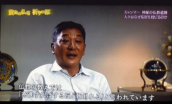 | (83) パゴダの構造と仏教の宇宙観の表現 (84) なぜ、多くのパゴダができたのか (85) 格差を是正するバガンの社会の仕組み 三つ目の疑問です。 では、なぜ富を蓄積した一般庶民がその財を自分の生活をよくするためではなく、パゴダを建設するために使ったのかという疑問がでてきます。 この答えは、仏教の信仰心をもって生活するバガンの人々の日々の生活の中に伺えます。 下はバガンを代表するパゴダのひとつ、ダマヤージガ・パゴダです。 ![]() 出典:NHKスペシャル「アジア巨大遺跡 バガン」 以下はグーグルマップで見たダマヤージガ・パゴダの位置です。 出典:グーグルマップ 以下はダマヤージカ・パゴダの概要です。 > ダマヤージカ・パゴダ(Dhammayazika Pagoda)は、バガン王朝のナラパティ > シードゥー王(King Narapatisithu、実在の王としては第7代、1139年生〜1210 > 年、在位:1173年〜1210年)によって1196年から1198年に建立された仏教寺院で、 > ニュー・バガンからアナウップワーソー村へ向かう道路の左手(北側)にありま > す。ダマヤージカ・パゴダの外形は、五角形三段の基壇の上に、金塗り円錐形 > (ベル形)の仏塔が配置され、レンガ造りとなっています。基壇の壁面には、 > 「ダマヤージカ(Jataka、釈迦の前世物語)」のシーンをあしらったテラコッタ・ > タイルが嵌め込まれています。 このお金は、ダマヤージカ・パゴダに村民が寄進、すなわち寄付したお金です。この月は、日本円でおよそ40万円集まりました。 ![]() 出典:NHKスペシャル「アジア巨大遺跡 バガン」 村民の一人が言います。私たちは国からの援助ではなく、こうした寄進されたお金で、パゴダの修復や維持管理を行っていると。 ![]() 出典:NHKスペシャル「アジア巨大遺跡 バガン」 中には驚くほどの大金を寄進する人物もいました。 この人(経営者)は年収の5%を寄進に使うために蓄えているとのことです。 ![]() 出典:NHKスペシャル「アジア巨大遺跡 バガン」 1000万円を寄進(寄付の仏教用語)したヤンホーさんの言葉の中に、疑問を解く手がかりがありました。 仏教の教えでは、「寄進すればするほど報われる」と言われていますと。また、寄進は自分にとって大きな功徳になります、とも言っています。 ![]() 出典:NHKスペシャル「アジア巨大遺跡 バガン」 ここにはじめて、「寄進」と「功徳」という言葉が出てきます。 功徳は仏教徒が現世で行う善い行いを指します。世の中や人のためになる行為です。 ところで、この功徳にはさまざまな形があります。 そのなかには、地域を掃除すること、小鳥や野良猫に食べ残しをあげること、お坊さんらに托鉢をさしあげること、得度式や出家する人々を経済的に支援すこと、そして自分たちの仏塔(パゴダ)をつくることなどがあります。 ![]() 出典:NHKスペシャル「アジア巨大遺跡 バガン」 とりわけ、毎日托鉢に来るお坊さんに対し食事を提供することは、代表的な功徳となります。 ![]() 出典:NHKスペシャル「アジア巨大遺跡 バガン」 佛教に仕える僧侶に食事をささげれば、功徳になると。 ![]() 出典:NHKスペシャル「アジア巨大遺跡 バガン」 ミャンマーでは現世でどれだけの功徳を積んだかで、来世に何に生まれ変わるかが決まると信じられています。 そのため、あらゆる場面で功徳を積むことが生活の一部になっています。 1000年前に生まれたパゴダは、この功徳の産物でした。 パゴダは王だけでなく、村民がパゴダをつくることでも功徳となったのでした。 ![]() 出典:NHKスペシャル「アジア巨大遺跡 バガン」 このようにして、自分が人間界から天界へ、また天界から涅槃に行くためにはどうしたらよいのかが課題となり、仏教では、仏教徒は功徳を積むことにより人間界から天界へ、また天界から涅槃へと行けるとされています。 王族だけでなく、村民が寄進してパゴダをつくることも功徳の一環となったのです。その結果、バガン遺跡からは肩書のない名前だけがが書かれた石碑をもつ膨大な数のパゴダができたと言えます。 私達宿泊したホテルのすぐ隣にあったバガン考古学博物館1階に 集められた沢山の石碑碑文の中からは以下の文言が見つかっています。、 , バガン王国は数あらゆる王国の中で最も住みごごちがよい。 , 住民たちは危険を知らず、心地よい生活を楽しんでいる。 , 国(バガン王朝)は有用な財に満ち、民は豊かで、その収入は莫大である。 , ゆえに、この国(バガン王国)は、神々の国よりも , 望ましいとさえ言えるのだ , と。 バガンには弱肉強食となる私的利益を極大化することが人間や人間社会の幸福にはつながらないという規範があり、「寄進による功徳」、すなわち富がたえず偏在しないよう、もてる者はもとより平均的な住民も、コニュニティ内の日常生活、行事、活動などに寄進(=寄付)することにより、長期的な功徳を得るという理念が規定にあったのです。 , つづく |