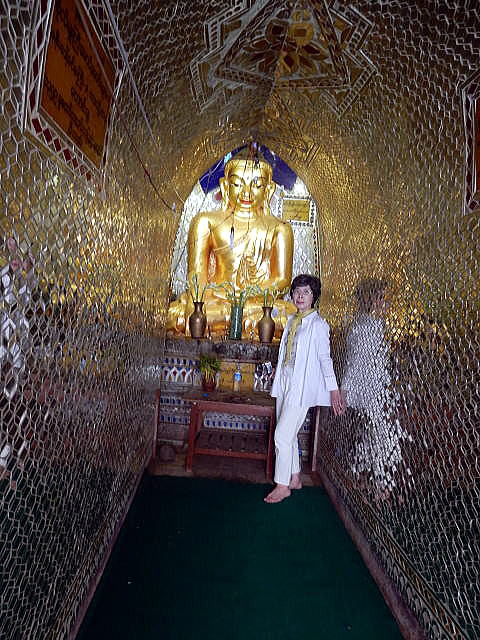 | (108) アーナンダーオーク僧院 (109) ミノチャンタ・パゴダ (110) スータンファイ・パゴ (111) バガン考古学博物館(1) (112) バガン考古学博物館(2) (113) ミニェインゴンパゴダ (114) ミィンパヤー (115) グタウティト ◆スータンファイ・パゴダ ところで、ミノチャンタ・パゴダの真西に、当初、名称は不明だったのですが、すばらしい寺院とパゴダがありました。下はその位置を示しています。 ![]() 出典:gg141 上の地図を部分拡大すると以下のようになります。 ![]() 出典:グーグルマップ 帰国後、詳細地図で調べていったところスータンファイ・パゴダ Hsu Taung Pyi Pagodaであることが分かりました。さらに青山が撮影した写真の中に、以下のようにミノチャンタと同じ方向に、ータンファイ・パゴダ Hsu Taung Pyi Pagoda が含まれていることが分かりました。 ![]() 撮影:青山貞一 Nikon Coolpix S9900 下はそのスータンファイ・パゴダ Hsu Taung Pyi Pagodaの境内に立つ入り口です。 ![]() 撮影:青山貞一 Nikon Coolpix S9900 この門の前で靴と靴下を脱ぎます。 ![]() 撮影:青山貞一 Nikon Coolpix S9900 門の次に下の写真のような寺院がありました。 ![]() 撮影:青山貞一 Nikon Coolpix S9900 中に入ると、下の写真のように、寺院の中は洞窟のようになっており、洞窟のトンネル具分はガラスというk鏡が張り巡らされていました。 ![]() 撮影:青山貞一 Nikon Coolpix S9900 下は鎮座する仏像です。よく見ると仏像の前に小さな電球がいくつもあります。おそらく夜間はこの電球が仏像を照らすのでしょう。 ![]() 撮影:青山貞一 Nikon Coolpix S9900 下は寺院の3つある部屋の別の部屋の奥にあった仏像です。ここにも豆電球がありました。 ![]() 撮影:青山貞一 Nikon Coolpix S9900 下の地図は、The Map of Baganというバガンの詳細地図のミノチャンタとスータンファイ・パゴダの部分を拡大したものです。 バガンには往時にはものすごい数のパゴダがあると聞いており、現在でも3000近くのパゴダがあると聞いていました。この地図の右側にある仏塔マークの下にある数字は、パゴダのシリアル番号です。たとえば、1762はバガンで1762番目のパゴダとして登録されているという意味です。 Hsu Taung Pyi Pagodaのように固有名詞いているパゴダにもおそらく番号がついているのでしょうが、固有名詞たついていない、当時があったものの、現在わからないパゴダには、このようなシリアル番号がついているのです。 ![]() 出典:The Map of Bagan 実はこの地図の元地図を私たちは帰りのニャンウー空港の売店で購入したのですが、帰国後調べたらホームページに掲載され、自由に使えることが分かりました。The Map of Baganで検索するとすぐに画面に表示されます。 拡大、縮小、移動も自由にできます。この地図をもとにパゴダ番号を調べたら2400番台まで探せました。となると、固有名詞がついているものを加えると、やはり3000ほどのパゴダがバガンに現存するというのは間違いがないようです。 その他のパゴダは800年以上の歳月の中で風化したり破壊されたりで現在、見ることができないのでしょう。 つづく |