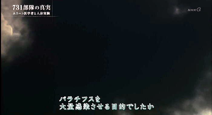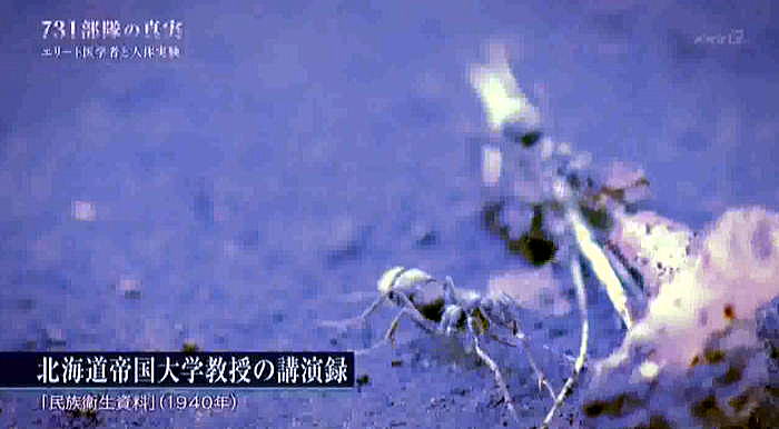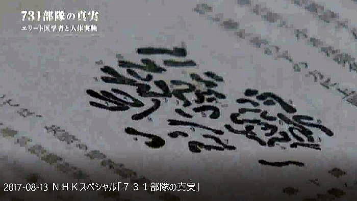 以下は2017年8月に2度放映されたNHKドキュメント「731部隊の真実」の本編のその5です。 ![]() 出典:NHKドキュメント「731部隊の真実」、2017年8月13日、放映 <日本軍兵隊集合写真> 生きた人間を実験材料にした医学者達。本来人の命を守るべき医学者がなぜ一線を超えたのか。 ![]() 出典:NHKドキュメント「731部隊の真実」、2017年8月13日、放映 <野外行軍の写真> それを後押ししたと見られるのが日本国内の世論です。 ![]() 出典:NHKドキュメント「731部隊の真実」、2017年8月13日、放映 <回る年表 1936年731部隊編成 1937年 日中戦争> 1937年日中戦争が勃発。中国側の激しい交戦で日本側も犠牲が増えていきます。 ![]() 出典:NHKドキュメント「731部隊の真実」、2017年8月13日、放映 <野外実験の様子> 匪賊:日本に反発する現地住民 日本軍は反発する中国人等を匪賊と呼び、掃討作戦を行っていきます。 ![]() 出典:NHKドキュメント「731部隊の真実」、2017年8月13日、放映 <新聞の見出し:神戸大学新聞記事文庫> 奈曼旗(熱河)公署に五百の匪賊襲来 政府もメディアも日本の犠牲を強調し、中国人への憎悪を駆り立てました。 ![]() 出典:NHKドキュメント「731部隊の真実」、2017年8月13日、放映 <新聞見出し;徹底殲滅> 暴虐極まる匪賊。匪賊を徹底殲滅。 ![]() 出典:NHKドキュメント「731部隊の真実」、2017年8月13日、放映 <中国人を連れた日本軍> 世論は軍による処罰を強く支持。匪賊に対する敵意が高まっていたのです。 そうした時代の空気と研究者は無縁ではありませんでした。 ![]() 出典:NHKドキュメント「731部隊の真実」、2017年8月13日、放映 <北海道大学医学部図書館> 731部隊以外でも、学術界では匪賊を蔑視する感情が広がっていました。 それを示す資料が北海道大学で見つかりました。 ![]() 出典:NHKドキュメント「731部隊の真実」、2017年8月13日、放映 <資料:外國に於ける断種法実施状況> 当時の厚生省が主催する研究会が発行した雑誌です。 染色体を研究する大学教授の講演の記録。 ![]() 出典:NHKドキュメント「731部隊の真実」、2017年8月13日、放映 <染色体の写真> 満州の匪賊を生きたまま研究材料としたことを公に語っていました。 「匪賊が人間を殺すならば、その報復ではないが、その匪賊を材料にしてはどうかと思いついた。」 ![]() 出典:NHKドキュメント「731部隊の真実」、2017年8月13日、放映 <染色体の写真(円形状に番号を示したもの)> 死んだ者は絶対にダメである。染色体の状態が著しく悪くなる。 ![]() 出典:NHKドキュメント「731部隊の真実」、2017年8月13日、放映 <蟻の写真:北海道帝国大学教授の講演録「民族衛生資料」(1940年)> 「匪賊一人を犠牲にしたことは決して無意味ではありません。これほど立派な材料は 従来断じてないということだけは出来ます。」 ![]() 出典:NHKドキュメント「731部隊の真実」、2017年8月13日、放映 <731部隊 元少年隊員 三角武さん> 14歳の時に731部隊に入隊した三角さん。匪賊は死刑囚だから実験材料として利用して良いと教えられたと言います。 ![]() 出典:NHKドキュメント「731部隊の真実」、2017年8月13日、放映 <同上証言> 証言「こういう時代なんだから、そうしなきゃ俺たちがやられるんだよと、そういった考えでしたね。だから口には出せないです。可愛そうだからとか。見ても口には出せないです。出したら非国民だ、とやられちゃう。そういった雰囲気というか、そういった一般的な風潮がそうだったんです。」 ![]() 出典:NHKドキュメント「731部隊の真実」、2017年8月13日、放映 ![]() 出典:NHKドキュメント「731部隊の真実」、2017年8月13日、放映 <空撮> 戦争が泥沼化していった1940年代、731部隊は遂に細菌兵器の実践使用に踏み切ります。中国中部の複数の都市で少なくとも3回、細菌を散布。細菌兵器での攻撃は国際条約で禁止されていましたが、日本は批准しないまま密かに使用しました。 ![]() 出典:NHKドキュメント「731部隊の真実」、2017年8月13日、放映 <731部隊 第一部(細菌研究)部長 川島清の証言> 証言「私がおりました間のことを申しますと、昭和16年に第一回、それから昭和17年に1回。中支において第731部隊は中国の軍隊に対して細菌武器を使用しました。」 出典:NHKドキュメント「731部隊の真実」、2017年8月13日、放映<同上証言 水面に月明かりが反射している> さらに、民間人にまで感染を広げる目的で、中国の集落に細菌を撒いたと証言されています。 証言「使われる細菌は主として、ペスト菌、コレラ菌、オア等チフス菌であることが決定しました。 ![]() 出典:NHKドキュメント「731部隊の真実」、2017年8月13日、放映 <同上証言> 証言「ペスト菌は主としてペスト蚤(ペストに感染させた蚤)の形で使われました。 その他のものはそのまま水源とか井戸とか貯水池というようなところに散布されたのであります。」 ![]() 出典:NHKドキュメント「731部隊の真実」、2017年8月13日、放映 ![]() 出典:NHKドキュメント「731部隊の真実」、2017年8月13日、放映 <731部隊 衛生兵 古都証人の証言−23.> ![]() 出典:NHKドキュメント「731部隊の真実」、20
