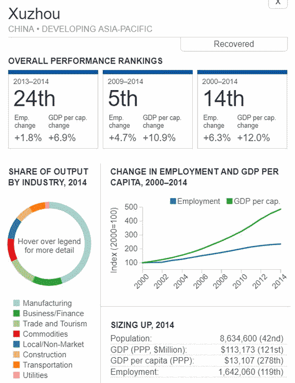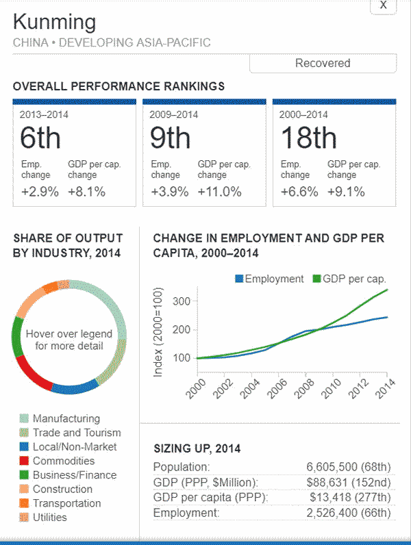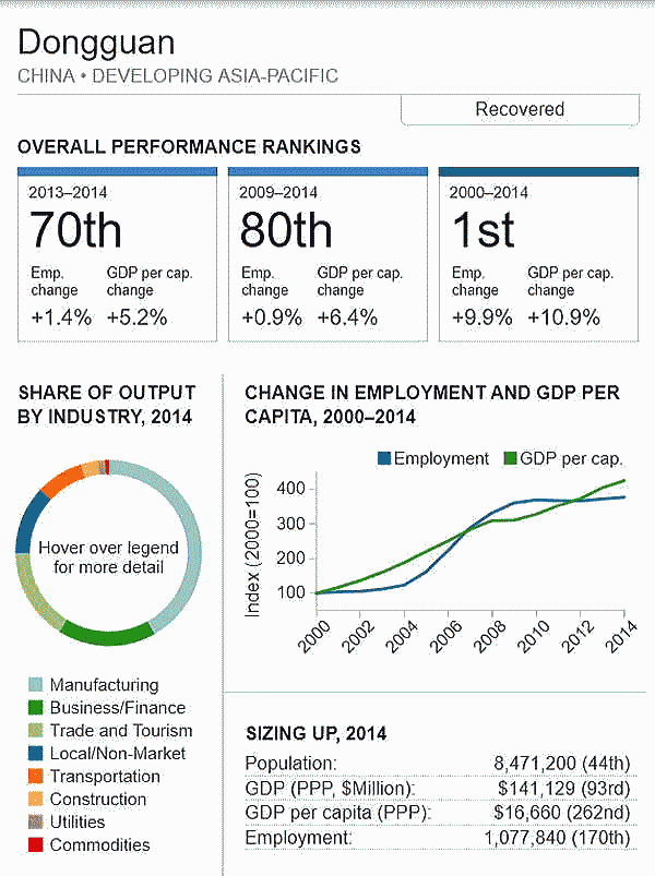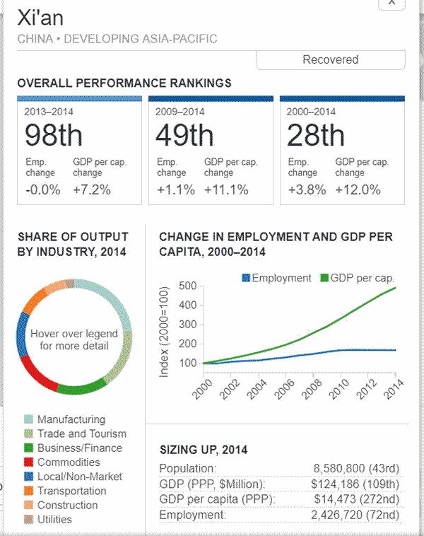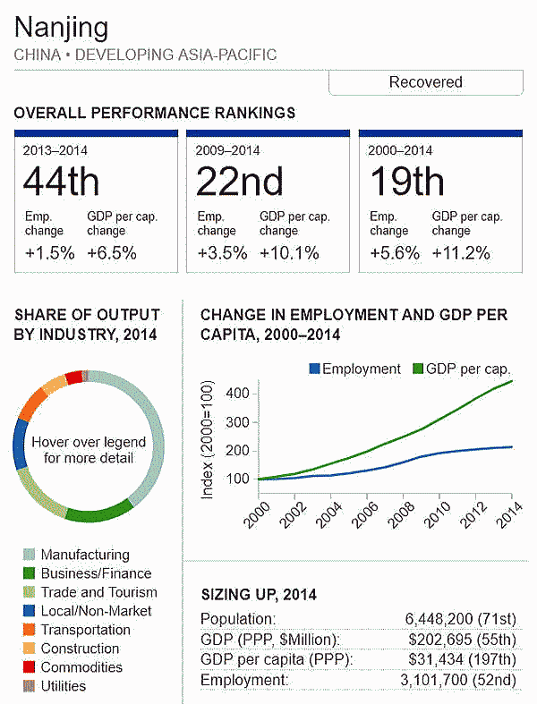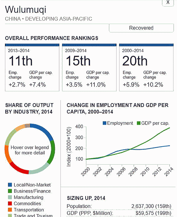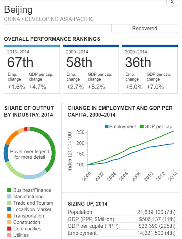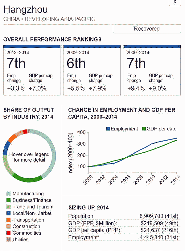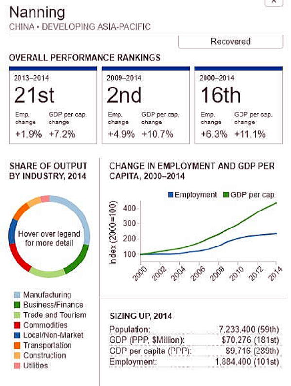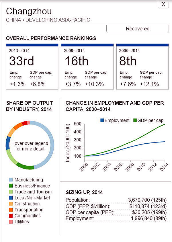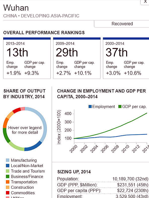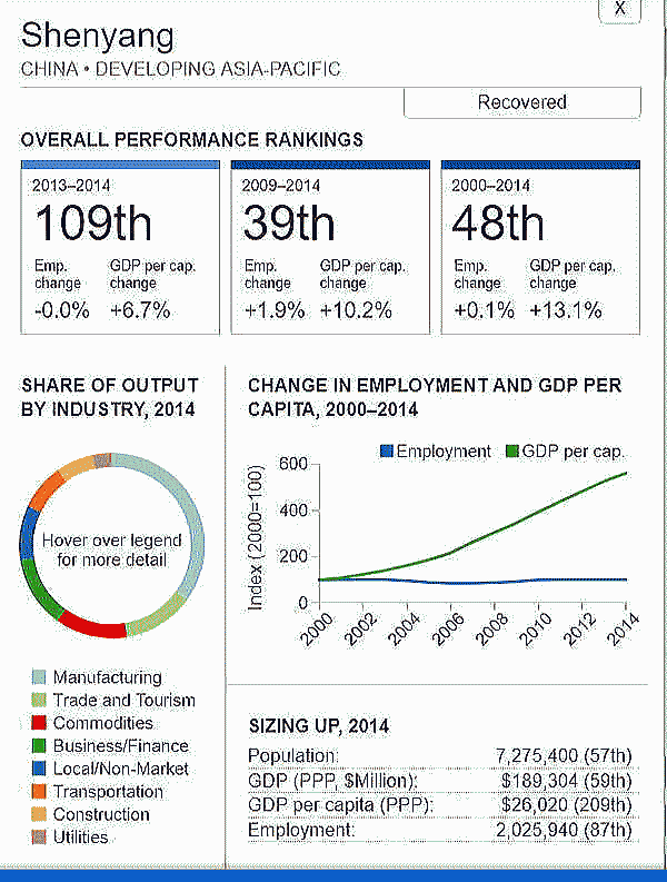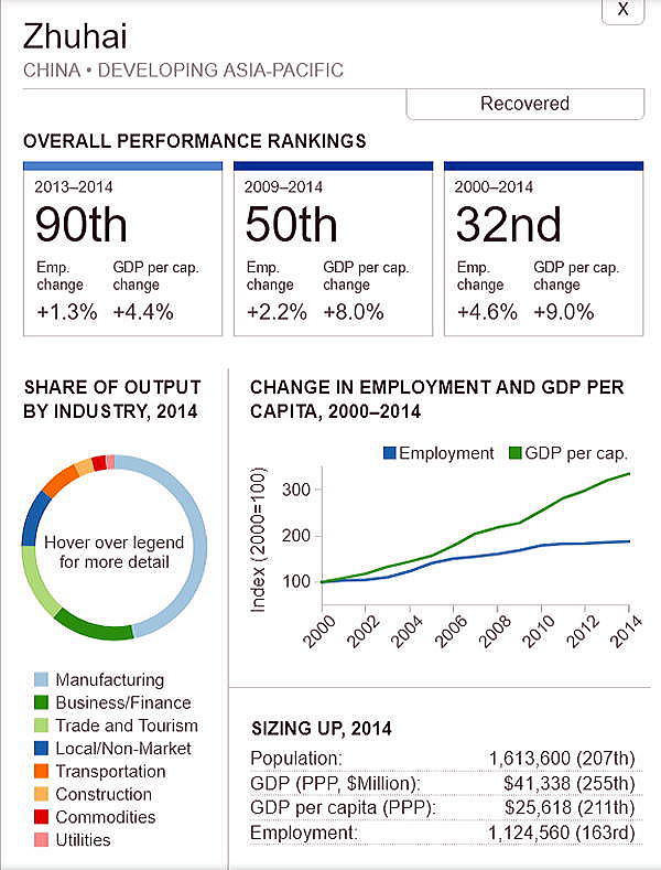 <世界300都市経済圏ランクマップ> 総合・一人当たりGDP・雇用 オリジナル出典:米国ブルッキングス研究所 第1位〜第50位 調査結果(総合、2000年〜2014年)を見てみます。 中国 東莞都市圏(1位/300) ![]() 中国 済南都市圏(2位/300) ![]() 中国 蘇州都市圏(3位/300) ![]() 中国 アモイ都市圏(4位/300) ![]() 中国 無錫都市圏(5位/300) ![]() 中国 福州都市圏(6位/300) ![]() 中国 杭州都市圏(7位/300) ![]() 中国 常州都市圏(8位/300) ![]() 中国 中山都市圏(9位/300) ![]() 中国 合肥都市圏(10位/300) ![]() 中国 深セン大都市圏(11位/300) ![]() 中国 成都都市圏(f第12位/300) ![]() 中国 南通都市圏(13位/300) ![]() 中国 徐州都市圏(14位/300) ![]() 中国 温州都市圏(15位/300) ![]() 中国 南寧都市圏(16位/300) ![]() 中国 煙台都市圏(17位/300) ![]() 中国 昆明都市圏(18位/300) ![]() 中国 南京都市圏(19位/300) ![]() 中国 ウルムチ都市圏(20位/300) ![]() 中国 ![]() 中国 青島都市圏(22位/300) ![]() マカオ 都市圏(23位/300) ![]() 中国 福州都市圏(24位/300) ![]() 中国 バトゥー都市圏(25位/300) ![]() 中国 広州市圏(26位/300) ![]() 中国 長 沙都市圏(27位/300) ![]() 中国 西安都市圏(28位/300) ![]() 中国 フヘハト都市圏(29位/300) ![]() 中国 南昌都市圏(30位/300) ![]() 中国 東営都市圏(31位/300) ![]() 中国 珠海都市圏(32位/300) ![]() 中国 大連都市圏(33位/300) ![]() 中国 仏山都市圏(34位/300) ![]() 中東 アラブ首長国連邦ドバイ都市圏(35位/300) ![]() 中国 北京大都市圏(36位/300) ![]() 中国 武漢都市圏(37位/300) ![]() ベトナム ホーチミン大都市圏(38位/300) ![]() 中国 唐山都市圏(39位/300) ![]() 中国 天津都市圏(40位/300) ![]() 中国 鄭州都市圏(41位/300) ![]() 中国 重慶大都市圏(42位/300) ![]() 中国 長春大都市圏(43位/300) ![]() アラブ 首長国連邦アブダビ都市圏(44位/300) ![]() インド デリー大都市圏(45位/300) ![]() 中東クウェート クウェート市(46位/300) ![]() マレーシア クアラルンプール大都市圏(47位/300) ![]() 中国 瀋陽都市圏(48位/300) ![]() ブルガリア ・ソフィア都市圏(49位/300) ![]() 中国 上海都市圏(50位/300) ![]() つづく 51−100