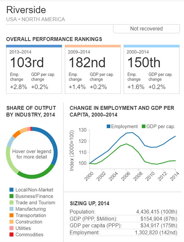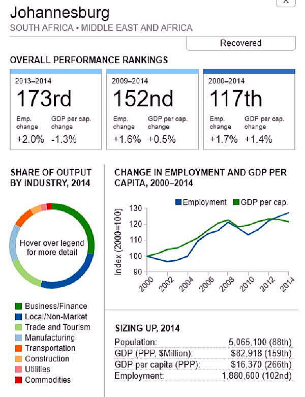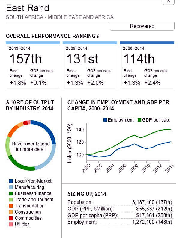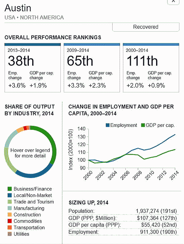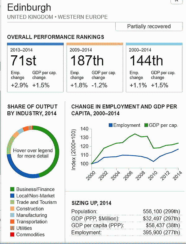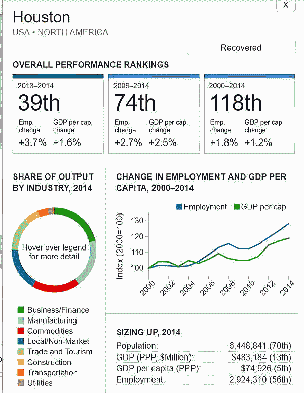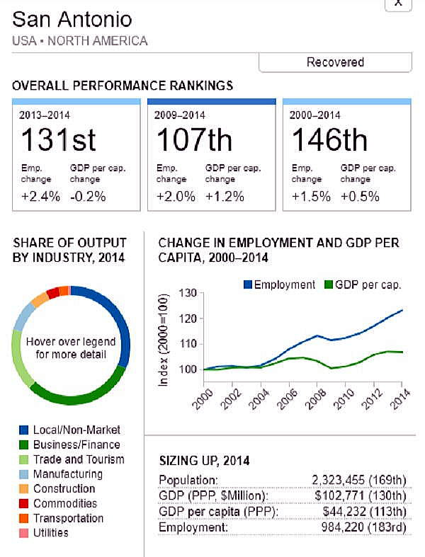 <世界300都市経済圏ランクマップ> 総合・一人当たりGDP・雇用 オリジナル出典:米国ブルッキングス研究所 第101位〜第150位 調査結果(総合、2000年〜2014年)を見てみます。 ブラジル フォルタレザ都市圏(101位/300) ![]() ブラジル キャンピナス都市圏(102位/300) ![]() カナダ ケベックシティ度試験(103位/300)青山、池田 ![]() 南アフリカ プレトリア都市圏(104位/300) ![]() 中華民国 新竹都市圏(105位/300) 青山 ![]() イスラエル ハイファ都市圏(106位/300) ![]() 中華民国 台南都市圏(107位/300) ![]() オーストラリア メルボルン都市圏(108位/300) 池田 ![]() メキシコ モンテレー都市圏(109位/300) ![]() 香港 大都市圏(110位/300)青山、池田 ![]() 米国 オースティン都市圏(111位/300) ![]() ポーランド クラクフ都市圏(112位/300)青山、池田 ![]() 中華民国 台北都市圏(113位/300)青山、池田 ![]() 南アフリカ イーストランド(114位/300) ![]() ブラジル サルバドール都市圏(115位/300) ![]() ニュージーランド オークランド都市圏(116位/300) ![]() 南アフリカ ヨハネスブルグ都市圏(117位/300) ![]() 米国 ヒューストン大都市圏(118位/300) ![]() 韓国 釜山市・ウルサン大都市圏(119位/300)青山、池田 市メキシコ グアダラハラ大都市圏(120位/300) ![]() 中華民国 高雄中大都市圏(121位/300) ![]() カナダ バンクーバー大都市圏(122位/300)..青山、池田 ![]() ルクセンブルグ・トリーア都市圏(123位/300) ![]() プラハ都市圏(124位/300) ![]() 韓国 大邱都市圏(125位/300) ![]() ヴェネズエラ カラカス都市圏(126位/300) ![]() ブラジル・リオデジャネイロ都市圏(127位/300) ![]() スイス ジュネーヴ都市圏(128位/300) ![]() スイス チューリッヒ都市圏(129位/300) ![]() ブラジル ポートアレグレ都市圏(131位/300) ![]() 米国 ベーカースフィールド都市圏(132位/300) beka-カナダ トロント都市圏(133位/300)..青山、池田 ![]() フランス トゥールーズ都市圏(134位/300).池田 ![]() ノルウェー オスロ都市圏(135位/300) ![]() ポーランド カトヴィツェ - オストラバ都市圏(136位/300) ![]() 米国 ポートランド都市圏(137位/300)青山、池田 ![]() 米国 ソルトレイクシティー都市圏(138位/300) ![]() 米国 ローリー都市圏(139位/300) ![]() カナダ オタワ都市圏(140位/300)青山、池田 ![]() 米国 バトンルージュ都市圏(141位/300) ![]() ハンガリー ブダペスト都市圏(142位/300) ![]() オーストラリア シドニー都市圏(143位/300) 青山、池田 ![]() 英国(スコットランド)、エジンバラ大都市圏(144位/300)..青山、池田 ![]() オーストラリア アデレード都市圏(145位/300) ![]() 米国 サンアントニオ都市圏(146位/300) ![]() スウーデン ストックホルム都市圏(147位/300) ![]() 南アフリカ ケープタウン都市圏(148位/300) ![]() 英国 ロンドン大都市圏(149位/300)..青山、池田 ![]() 米国 リバーサイド都市圏(150位/300) ![]() つづく 151−200