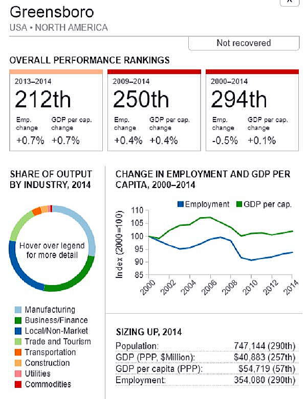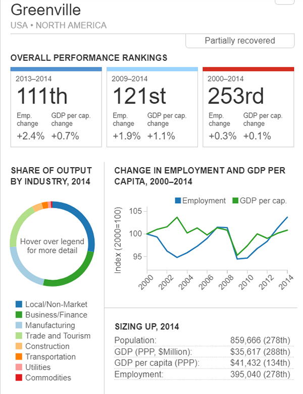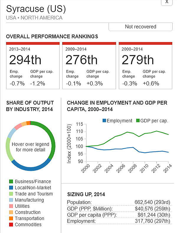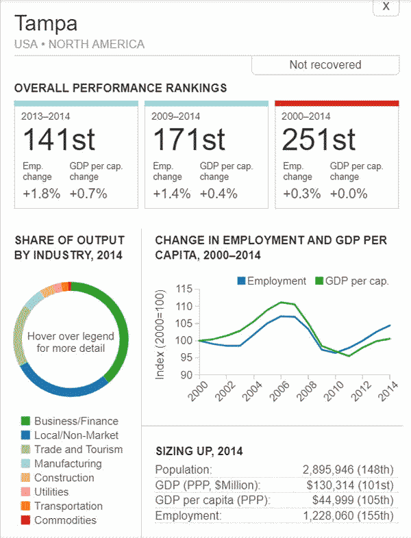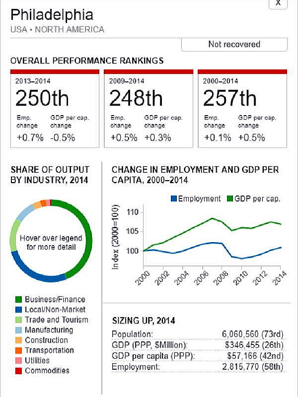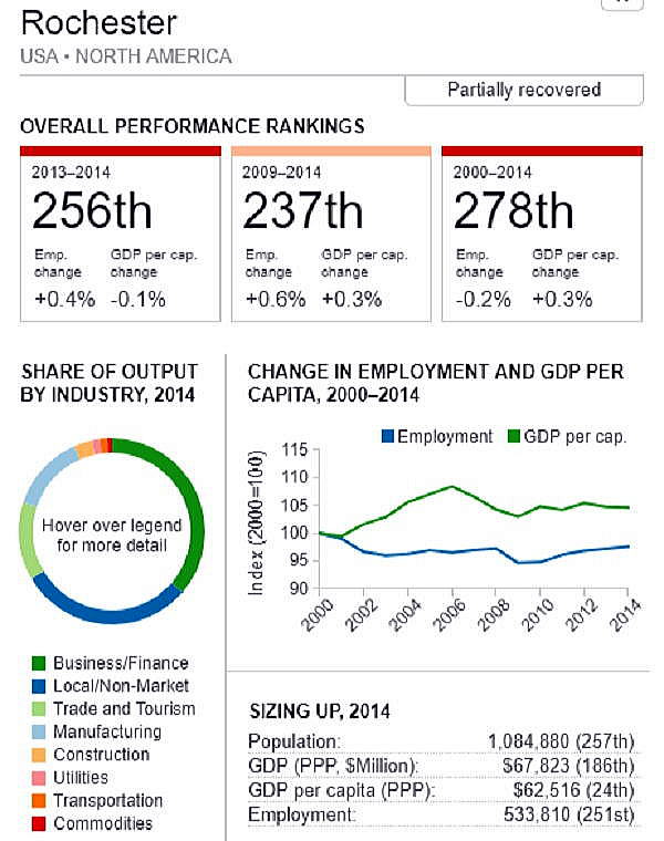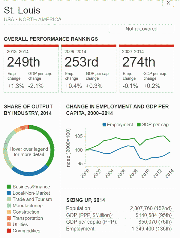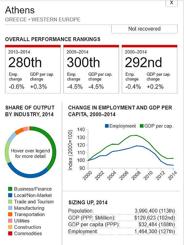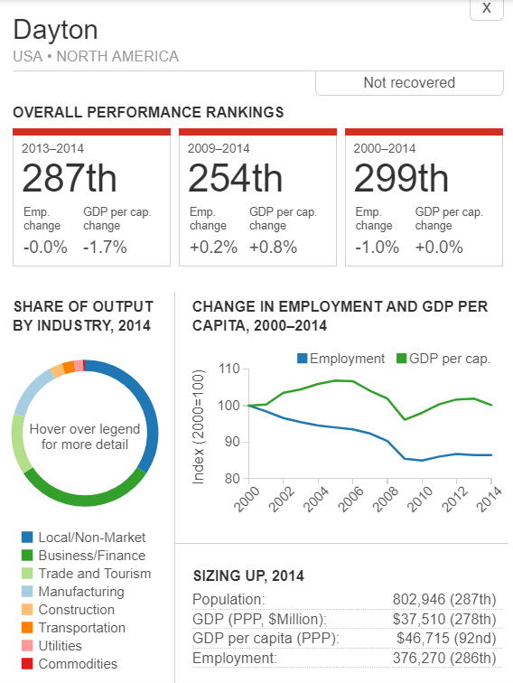 <世界300都市経済圏ランクマップ> 総合・一人当たりGDP・雇用 オリジナル出典:米国 ブルッキングス研究所 第251位〜第300位 調査結果(総合、2000年〜2014年)を見てみます。 米国 タンパ都市圏(251位/300) 青山 ![]() フランス ストラスブ-ルグ都市圏(252位/300)..池田 ![]() 米国 グリーンビル都市圏(253位/300) ![]() 米国 プロヴィデンス都市圏(254位/300) ![]() 米国 アクロン都市圏(255位/300) ![]() 米国 カンサスシティー都市圏(256位/300) ![]() 米国 フィラデルフィア大都市圏(257位/300) ![]() 米国 アトランタ都市圏(258位/300) ![]() 米国 ハートフォード都市圏(259位/300) ![]() 日本 鹿児島都市圏(260位/300) 青山、池田 ![]() イタリア ヴェニス・パドヴァ大都市圏(261位/300)..青山、池田 ![]() 米国 ルイスビル都市圏(262位/300) ![]() スペイン ビルバオ都市圏(263位/300) ![]() 日本 名古屋市都市圏(264位/300)青山、池田 ![]() 米国 サンフランシスコ大都市圏(265位/300)..青山、池田 ![]() 米国 バーミンガム都市圏都市圏(266位/300) ![]() 日本 熊本都市圏(267位/300)青山、池田 ![]() 米国 アルバカーキー都市圏(268位/300) ![]() 米国 ニューヘブン都市圏(269位/300) ![]() スペイン バルセロナ大都市圏(270位/300) ![]() 米国 サンホセ大都市圏(271位/300).青山、池田 ![]() 日本 浜松都市圏都市圏(272位/300) 青山、池田 ![]() 日本 浜松都市圏都市圏(272位/300) 青山、池田 ![]() 日本 静岡都市圏(273位/300) 青山、池田 ![]() 米国 セントルイス都市圏(274位/300) ![]() 米国 ミルウォーキー都市圏(275位/300) ![]() 日本 岡山都市圏(276位/300) 青山、池田 ![]() 米国 シカゴ都市圏(277位/300) ![]() 米国 ロチェスター都市圏(279位/300) ![]() 米国 シラキュース都市圏(279位/300) ![]() 米国 ブリッジポート都市圏(280位/300) ![]() 日本 大阪神戸大都市圏(281位/300) 青山、池田 ![]() イタリア ツーリン都市圏(282位/300) ![]() ポルトガル リスボン都市圏(283位/300) 池田 ![]() 米国 メンフィス都市圏都市圏(284位/300) ![]() 米国 グランドラピッズ都市圏(285位/300) ![]() イタリア フローレンス(フィレンツェ)都市圏(第286位/300) ![]() スペイン ヴァレンシア大都市圏(287位/300) ![]() 日本 広島都市圏(288位/300) 青山、池田 ![]() 日本 札幌都市圏(289位/300) ![]() 日本 新潟都市圏(290位/300) ![]() 米国 クリーブランド都市圏(291位/300) ![]() ギリシャ アテネ都市圏(292位/300) ![]() 日本 仙台都市圏(293位/300) ![]() 米国 グリーンズボロ都市圏(294位/300) ![]() イタリア ナポリ大都市圏(295位/300)..青山、池田 ![]() 米国 ニューオリンズ都市圏(296位/300) ![]() プエルトリコ サンフアン都市圏(297位/300) ![]() ポルトガル ポルト都市圏(298位/300) 池田 ![]() 米国 デイトン都市圏(299位/300) ![]() 米国 デトロイト都市圏(300位/300) ![]() つづく 世界300都市経済マップへ